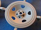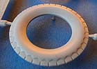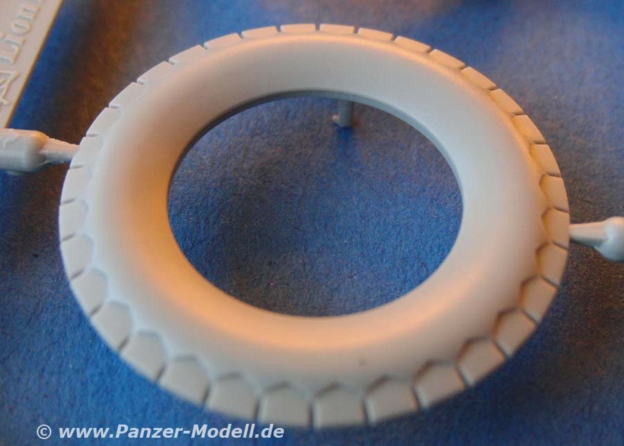Der Fahrwerksrahmen ist in einem Stück gespritzt und macht einen guten Eindruck. Die Fahrwerksteile wie Laufrollen und Schwingarme sehen ebenfalls gut aus. Die Frontreifen werden aus mehreren schichten zusammengesetzt - leider ist hier an den Reifenflanken kein Herstelleraufdruck zu sehen.