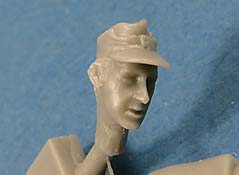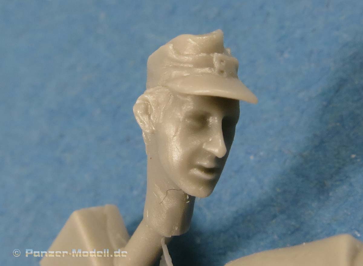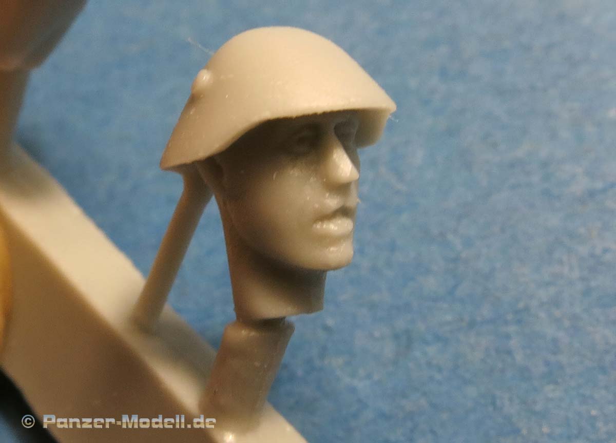 Die Darstellung der Gesichter ist ausgezeichnet. Detaillierte Gesichtszüge, die mit passender Bemalung ein ausdrucksstarkes Gesicht ermöglichen. Dazu bereits angegossene Kopfbedeckungen - bei der Kommandantenfigur eine Feldmütze, der Infanterist hat den späten, in Planung befindlichen Helm, der als Vorlage der späteren NVA Heme diente. Absolut passend und gut geformt gegossen.