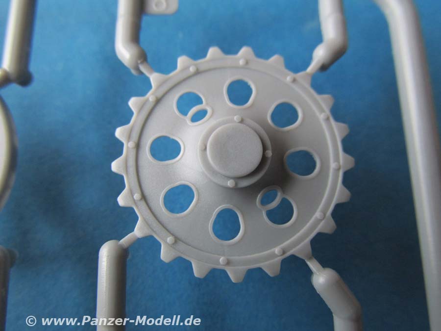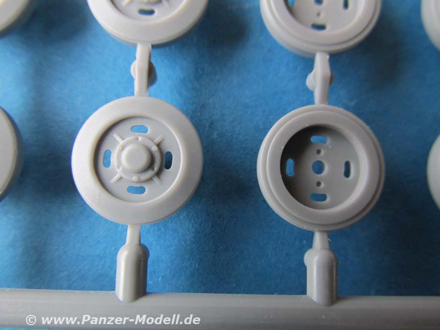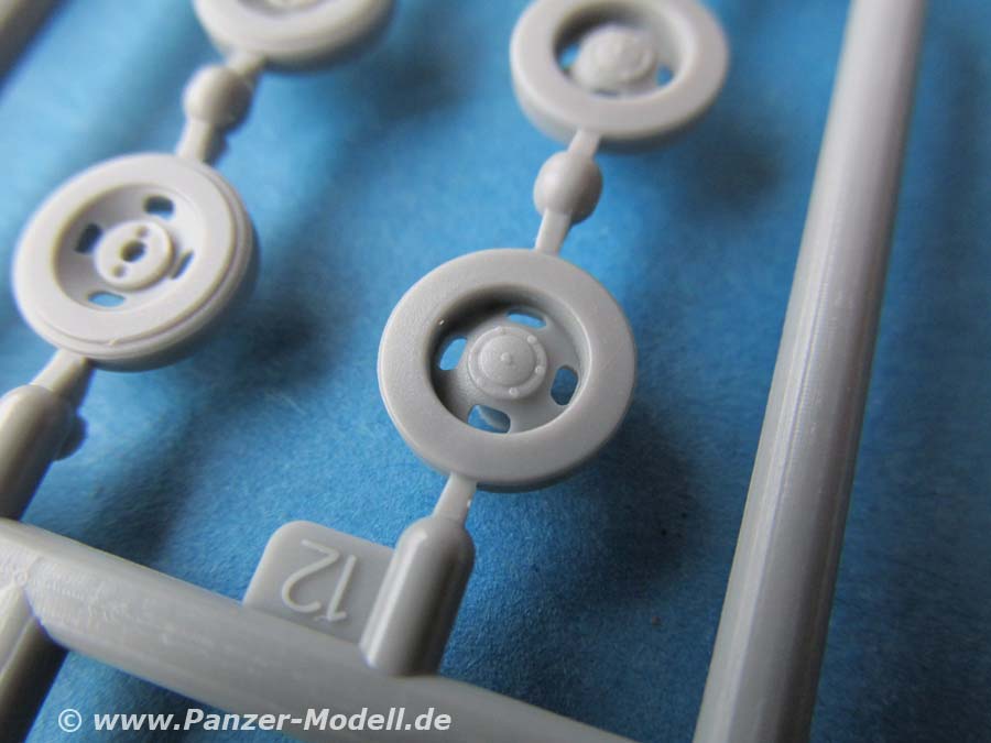 Die Laufrollen sind sehr gut und vor allem korrekt dargestellt. Dies gilt auch für die Treibräder mit ihrem speziellen Aussehen zweier Aussparungslöcher.