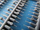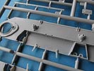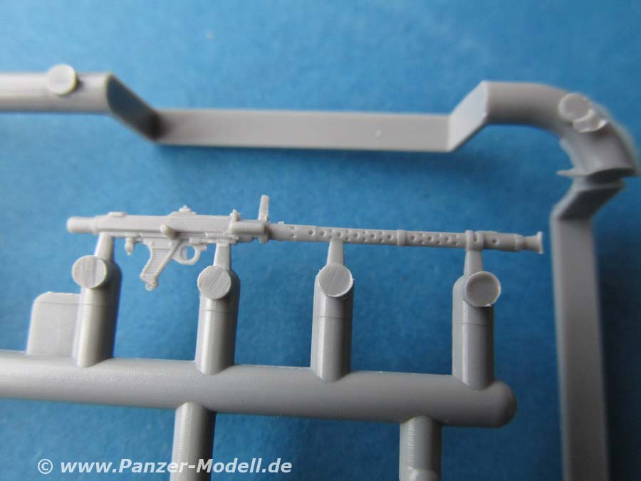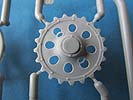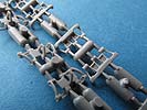Die Kette besteht aus einzelnen Plastikspritzgussgliedern, die von ihren Angüssen befreit werden müssen. Diese werden zusammengesteckt mit zwei kurzen Plastikbolzen gesichert werden. Auch diese müssen vom Spritzling abgetrennt werden. Die Qualität der Kettenglieder ist ausgezeichnet mit feinen Details und vor allem komplett ohne Auswerferstellen. Der Bau wird etwas durch die beiliegende Bauhilfe erleichtert.