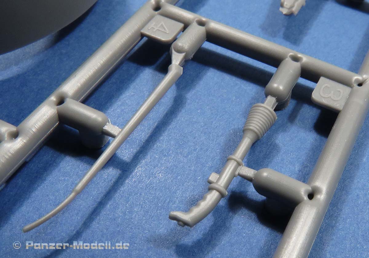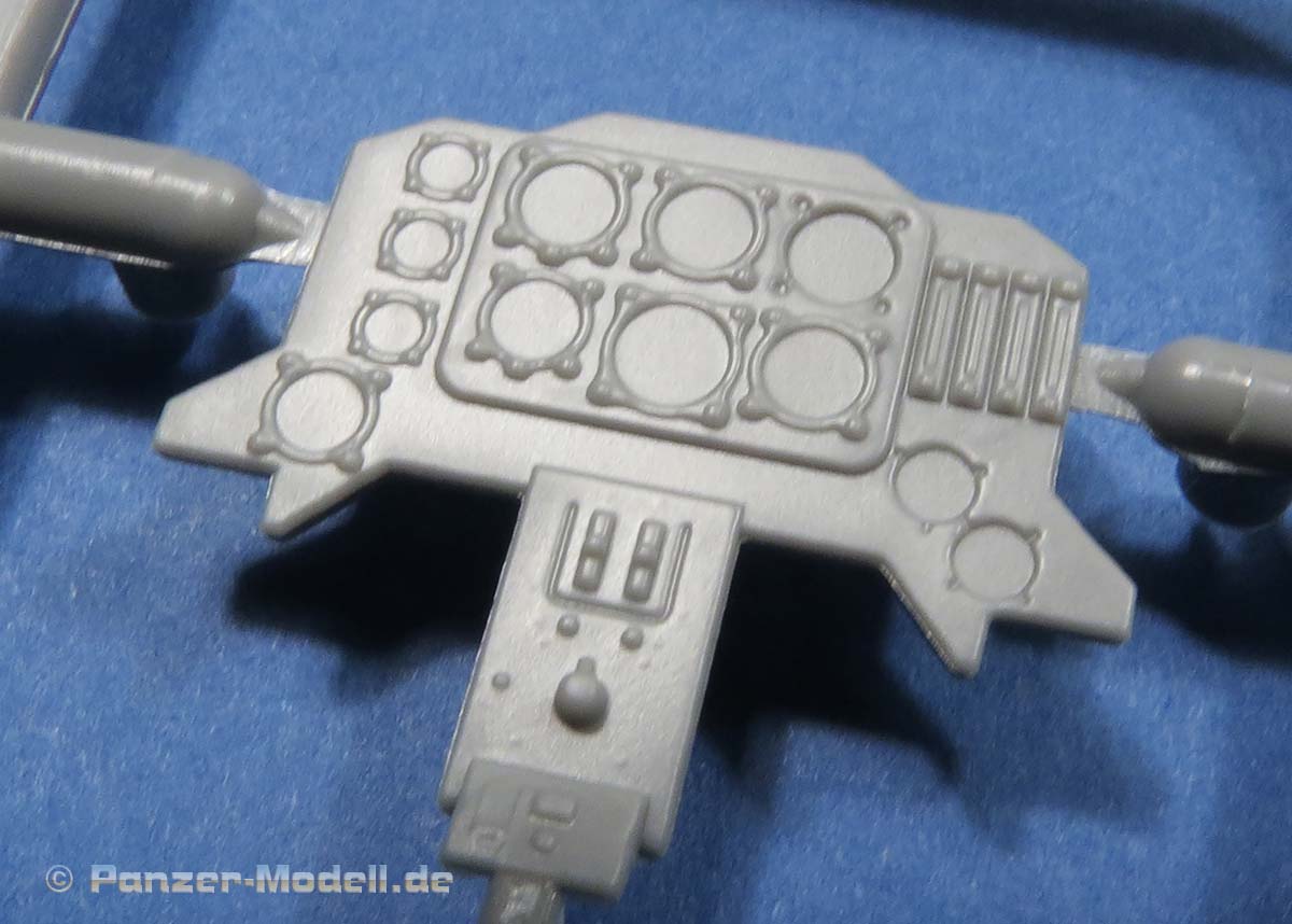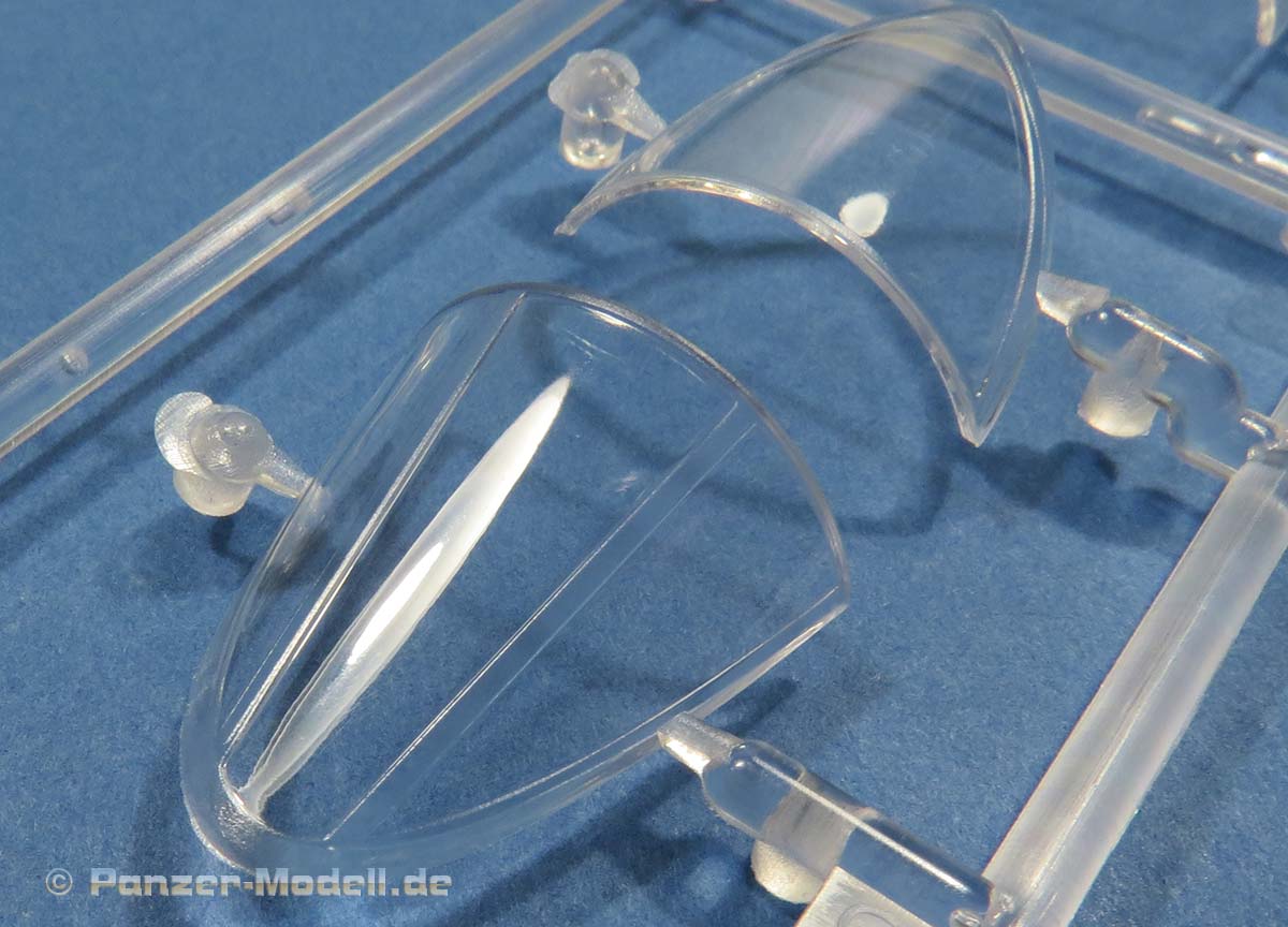 Das Cockpit ist ebenfalls enthalten, das natürlich unter den glasklaren Kanzelteilen deutlich sichtbar ist und daher auch recht ordentlich detailliert ist mit vielen filigranen Teilen und sogar PE Teilen für die Gurte.