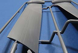 An den vier Flügelenden des Heckleitwerks lassen sich 4 Stützräder anbauen, entweder offen für den Bodendienst oder eingefahren und verschlossen während des Flugs - das kann der Modellbauer entsprechend wählen und anbauen.