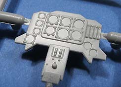 Die drei rotierenden Flügel mit Triebwerken setzen sich im Grunde aus je zwei Halbteilen zusammen und strotzen ebenfalls vor Nietendarstellungen, die fein und sehr gelungen sind. Für die Triebwerke gibt es ein Inlay, das beim Blick in die Triebwerksöffnungen schöne Details offenbart.