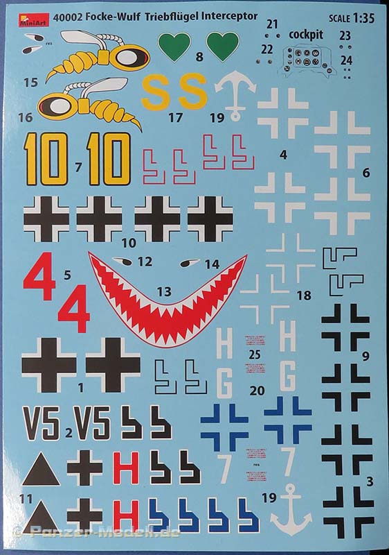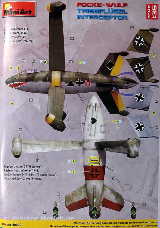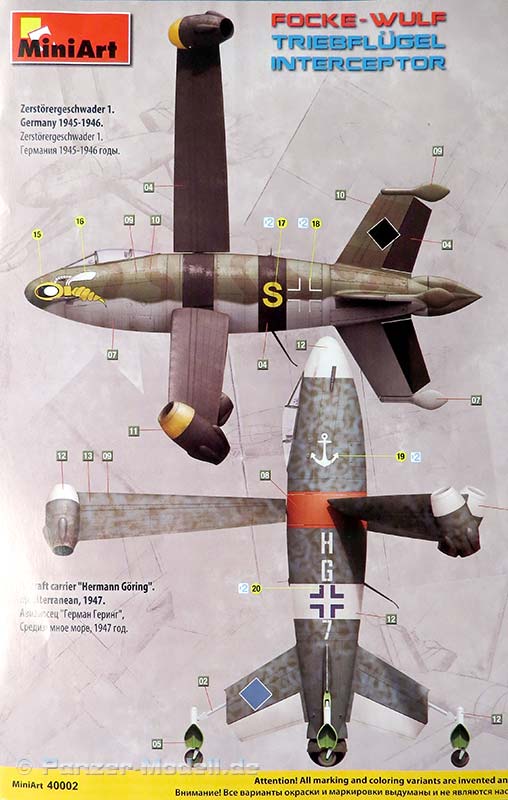 Am Ende sind weitere farbig gedruckte Bemalungsoptionen für den Triebflügel vorhanden.