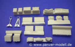 Als kleinen Bonus legt MR noch je eine frühe und späte Version der Rohrverzurrung als Zinnteile bei. Die übrigen Teile sind - wie heute bereits mehrfach erwähnt - sehr sauber aus beigem Resin gegossen bieten keinen Grund zur Klage.