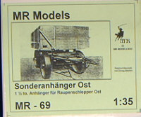 Generatoranhänger von FCM haben wir ja bereits besprochen, heute stellen wir Ihnen den Sonderanhänger Ost vor. Als einfacher Anhänger für die schwierigen Witterungsbedingungen im Osten konzipiert, bildet dieser 1,5t Anhänger ein ideales Gespann mit Italeris Raupenschlepper Ost. Der Sonderanhänger Ost ist normalerweise mit vier großen Stahlfelgen ausgestattet und für eine Marschgeschwindigkeit von grade einmal 8 km/h ausgelegt. Es wird vermutet, daß die Sonderanhänger Ost auch mit normalen Luftdruckreifen gefahren wurden, also liegen diese dem Modell optional bei. Die Qualität ist gut, die teile weitestgehend blasenfrei und sauber gegossen. Lediglich die flachen Seitenteile sind etwas gebogen, das sollte sich aber über etwas Wasserdampf richten lassen. Neben Resin Teilen verfügt das Modell auch über eine stattliche Zahl von Metallteilen, auch hier ist die Qualität exzellent. Meiner Meinung nach ist der Sonderanhänger Ost eine Bereicherung für jeden Fuhrpark und vorallem mal eine willkommene Anhängelast, wenn man nicht immer nur Kanonen oder Nebelwerfer anhängen möchte.
