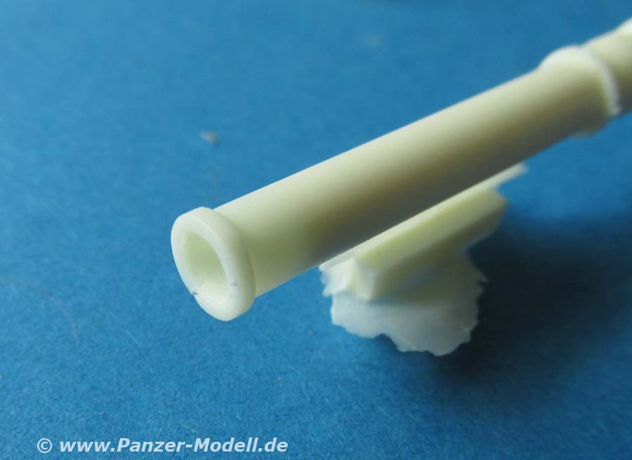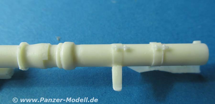 Natürlich ist das Werferrohr das Hauptteil des Bausatzes, das mit der Dreibeinlafette, Halterung und Optik versheen wird. Das Rohr ist an den Enden hohl und ohne Verzug gegossen.