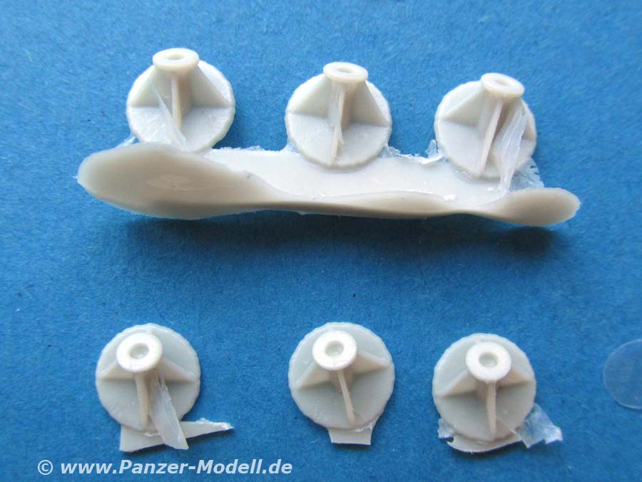 In dem Set finden sich 6 Resinteile zur Darstellung der ominösen Halterungen an Panthern, wie man sie seinerzeit bei der Bergung eines Panthers aus einem Fluss vorgefunden hat. Bis heute weiss keiner wofür diese angebracht waren.