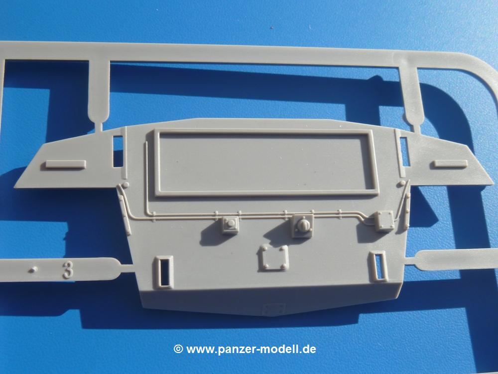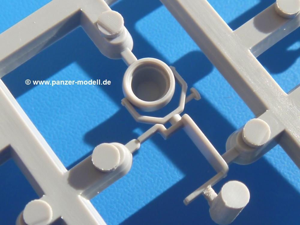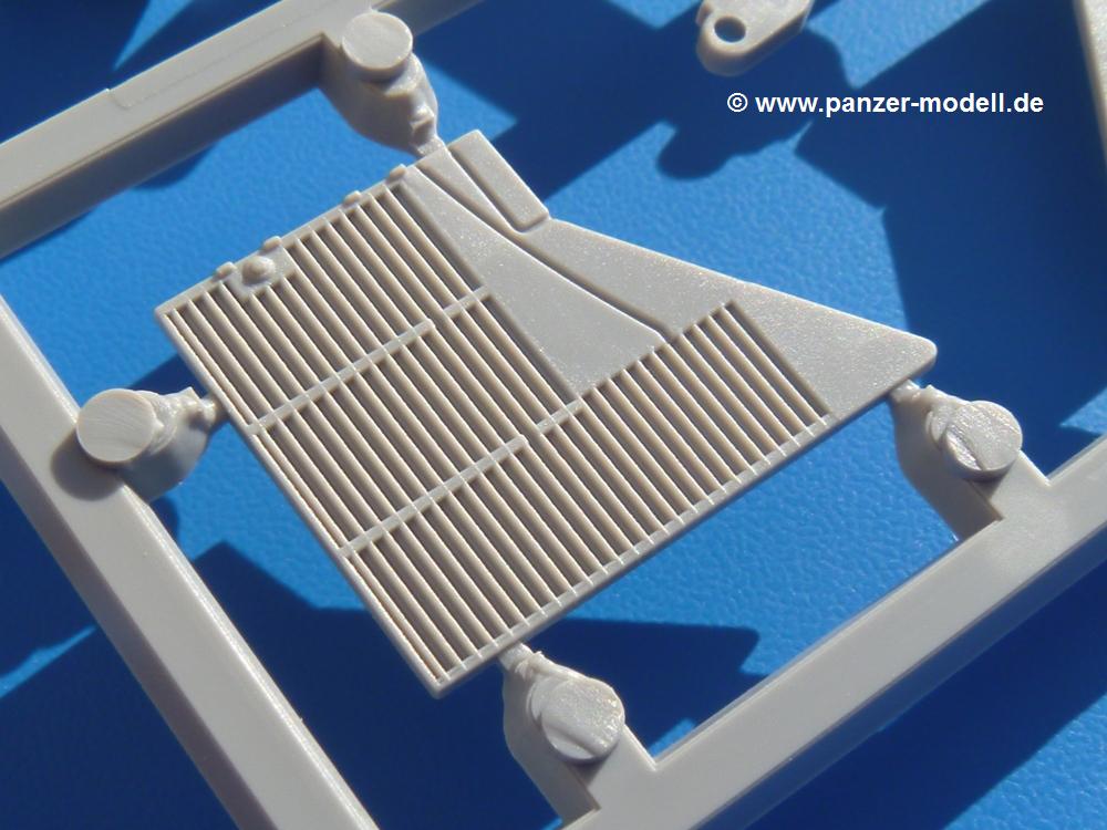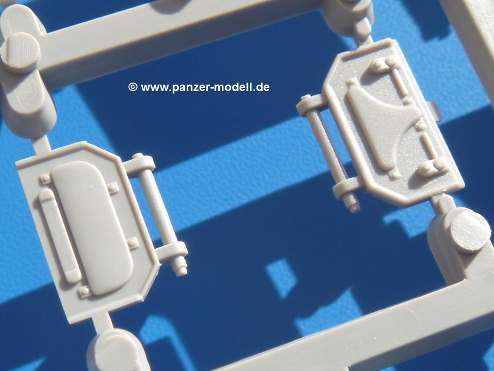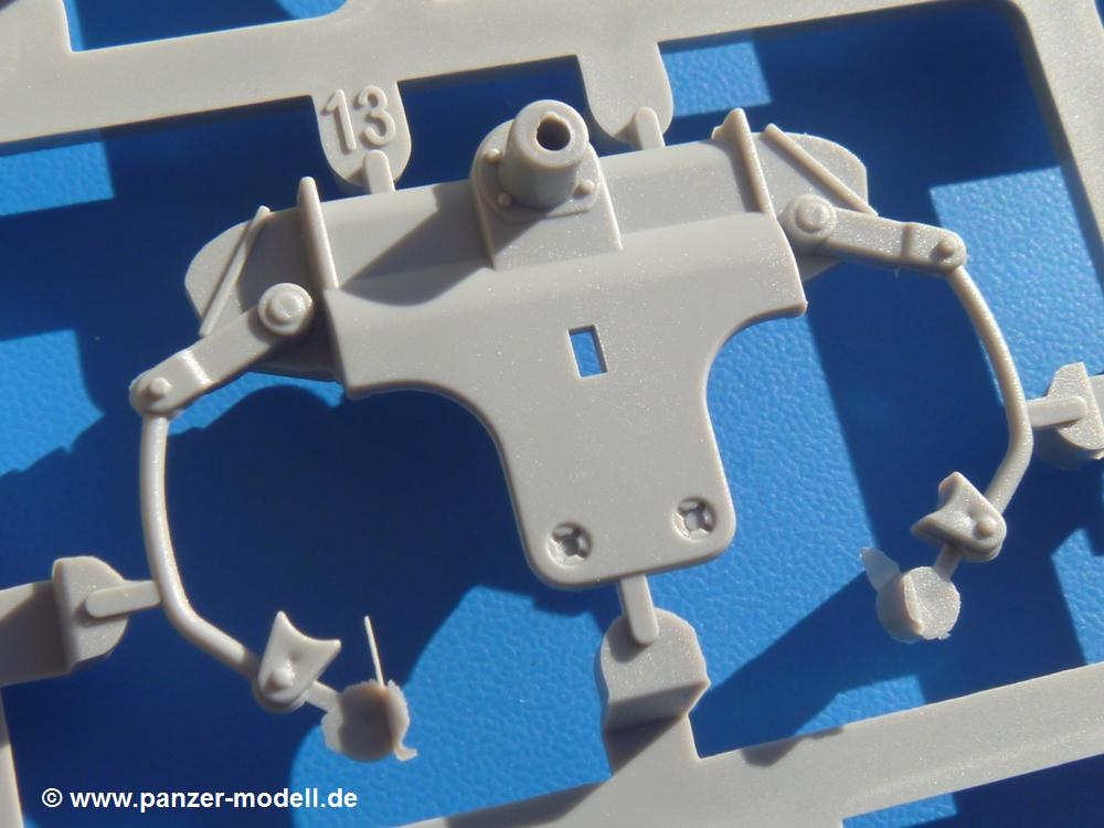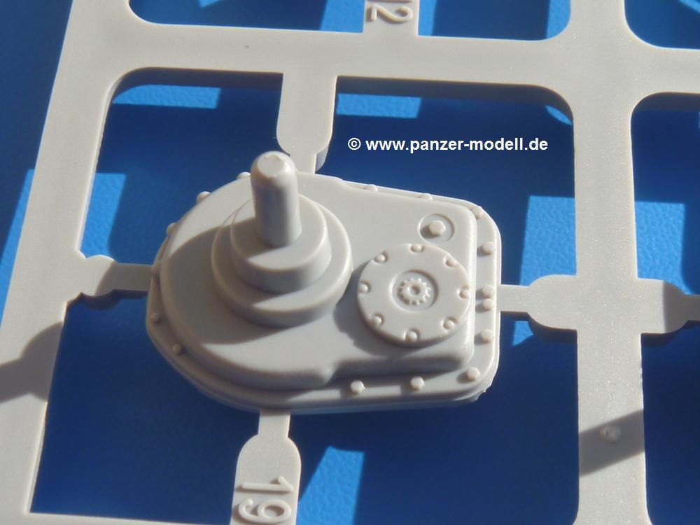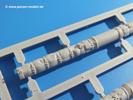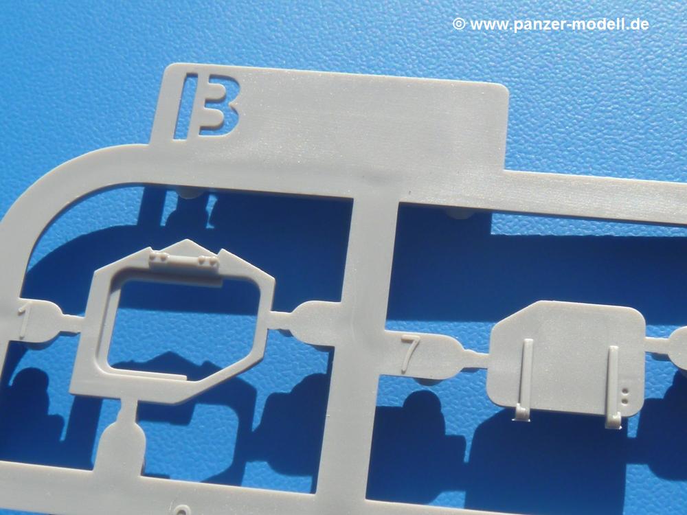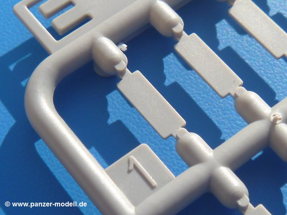 Seit der ersten Ankündigung der Chieftains hat man dem Moment entgegengefiebert, endlich in den Karton zu schauen. Vertraute Takom Qualität erwartet einen - sauberer Guss, weder Versatz, noch Fischhäute oder Grat, keine Sinkstellen, dafür aber scharfe Details und sinnvoll aufgeteilte Bauteile, ohne in einem Mikrokosmos zu landen.Jeder Laufrollenwagen besteht aus 4 Teilen. Hier sind die Federn sehr schön dargestellt. Während die inneren Laufrollen aus je einem Stück gefertigt sind, bestehen die äußeren Laufrollen aus der Felge, dem Radnabendeckel, einem Innenring und der äußeren Gummierung. Typ und Größenbezeichnung in erhabenen Buchstaben/Zahlen auf dem Ring fallen positiv ins Auge. Sehr schön auch die Kette. Die einzelnen Glieder finden wir in der Art von Magic Tracks in einem separaten Tütchen. Laut Anleitung 200 Glieder, gefunden habe ich 205. Pro Kette braucht man 97 Glieder + 2 für die Ersatzglieder. Es ist also so oder so Reserve vorhanden. Man muss nur auf der Gliedinnenseite je einen Angusspin versäubern. Auch wenn es am Ende keine bewegliche Kette sein wird, die Glieder flutschen förmlich ineinander, dass es eine Freude ist. Auf der Aussenseite finden wir erhabene Gussnummern. Ich habe nicht jedes Glied durchgesehen, aber so einige verschiedene Nummern entdeckt. Eigentlich ist es schade, dass die Nummern durch die separaten Kettenpolster wieder verschwinden. Und leider konnte ich auf die Schnelle auch keine Originalfotos von Chieftains ohne Kettenpolster finden.Die Unterwanne besteht bis auf die Heckplatte aus einem Guss und ist so gestaltet, dass die Oberwanne an der Unterseite verschlossen wird, so dass man auch mal getrost die Seitenschürzen weglassen kann. An der Unterseite finden wir einige Wartungsdeckel. An der Heckplatte wird der große Kasten der Abgasanlage montiert. Die Auspuffendrohre bestehen aus je 2 hohlen Hälften. Aufbohren unnötig. Die Rohrzurrung aus 4 Teilen kann beweglich gebaut werden, so dass man sie sowohl in Zurrstellung als auch in Einsatzstellung benutzen kann. Auf die hinteren Schmutzfänger kommen kelien Staukästen mit schönen Klavierscharnieren. Hier finden auch die Heckleuchten ihren Platz. Die Gläser bestehen aus Klarsichtmaterial.Auch die Oberwanne besteht aus einem großen Stück. Hier sind ebenfalls an verschiedenen Stellen erhabene Gussnummern zu finden. Die Motorroste haben eine schöne Tiefe und werden mit PE-Teil Gittern und Handgriffen verfeinert. Die Chieftain-typischen, verwinkelten Staukästen bestehen meist aus 2-3 Teilen mit Details wie den Verriegelungen. Vor dem Turmdrehkranz links und rechts der Fahrerluke erhält der Mk.11 (wie beim Mk.10 schon) eine Aufpanzerung. Der Fahrerwinkelspiegel ist ein Klarsichtteil mit angedeuteten Scheibenwischern. Die Fahr- und Infrarotscheinwerfer sind innen hohl. Auch hierfür gibt es kristallklare Lampengläser. Jeder Lampenschutzbügel besteht aus 3 Teilen. Kleines Ginnick hier ist je eine PE Leiste, die dann das, ebenfalls aus PE bestehende, kleine Schwallbrett am Bug abstützt. Die Aussenspiegel bestehen aus dem Spiegel selbst und der Halterung. Die Halterungen sehen nur die aufgerichtete Stellung vor, aber mit einem geschickten Schnitt kann man dies noch ändern, wenn man will. Die eigentlich vierteiligen Seitenschürzen sind aus je einem Teil gefertigt (kennt man doch irgendwo her…?). Die Zurrösen sind angegossen.Kommen wir zum Turm. Unterteil, Oberteil mit der ab Mk.10 vorhandenen Stilbrew Panzerung, Heckteil und linke Seite mit den Änderungen für das TOGS. Alle Winkelspiegel bestehen aus Klarsichtteilen. Die Richtschützenoptik kann man wahlweise offen oder geschlossen bauen. Lässt man sie zu, kann man sich den Winkelspiegel dort sparen. Kommandanten- und Ladeschützenluke können beweglich angebracht werden. Lässt man sie offen, kann man sich an den Innendetails (Kopfpolster, Riegel) der Luken erfreuen, bekommt dafür aber auch einen Blick in den sonst leeren Turm. Wie die Fahrscheinwerfer ist der Kommandantensuchscheinwerfer hohl und mit Klarsichtscheibe versehen. Die Rundumleuchte wird mit ihrem Glasteil auch gut zur Geltung kommen. Leider ist das Kanonenrohr in 2 Hälften geteilt, auch die separate Rohrmündung, aber die sehr schönen Details der Rohrummantelung lassen einen das schnell vergessen. Für die Blende liegt eine Plane aus Vinyl bei, sehr weich und beweglich, so dass sie der Höhenrichtung der beweglichen Kanone folgen kann. Die Turmstaukörbe werden mittels PE Gittern zu echten Hinguckern. Das Kommandanten-MG sieht am Giessast sehr gut aus, nur befindet sich ein Anguss genau an der Rohrmündung. Zum einen kann man nicht erkennen, wo man abschneiden muss, zum anderen kann man keine hohle Mündung erwarten (kann man bei dem Kaliber verschmerzen). Das TOGS besteht im Ganzen aus 13 Teilen. Für die Lüftung gibt es ein PE Gitter, für die Optik ein Klarsichtteil. Die Wahl zwischen offenem und geschlossenem TOGS ist einem selbst überlassen. Immer wieder fallen Details ins Auge wie die Zuleitungen zu den Nebelmittelwurfanlagen, Gussnummern, Verriegelungen usw. Mir gefällt's!Decals und Bemalungsvorschläge für 5 verschiedene Fahrzeuge liegen vor:· unbekannte Fahrzeug BATUS (NATO Grün, Sand-Gelb)
