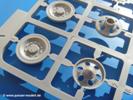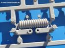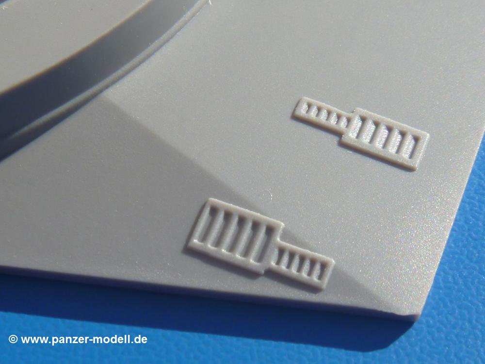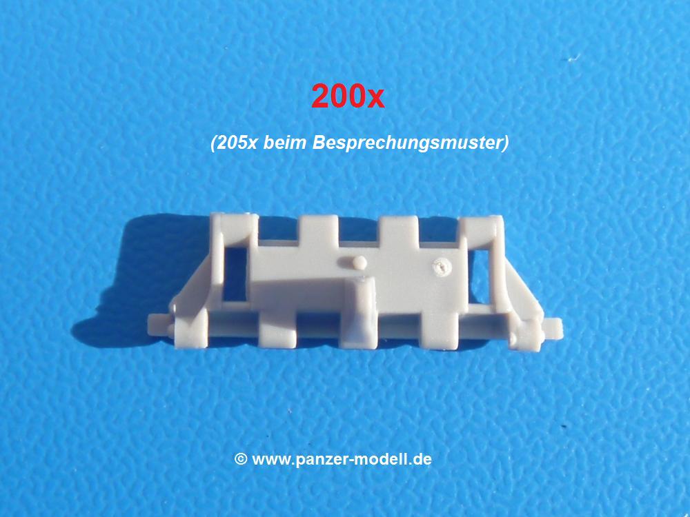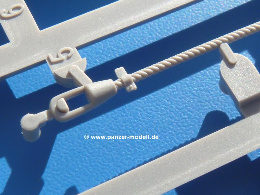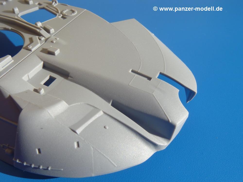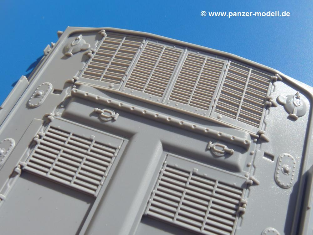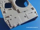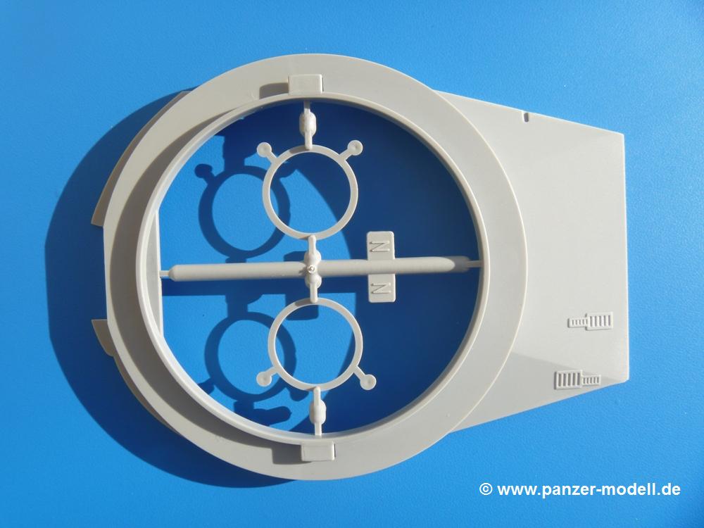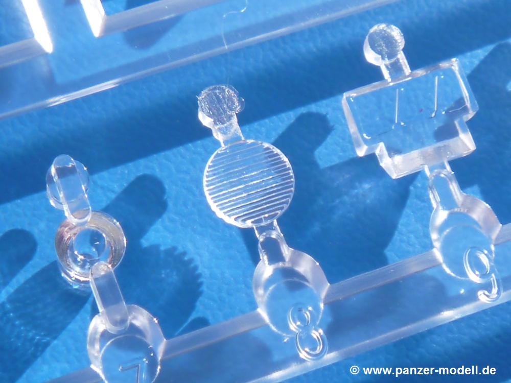 Seit der ersten Ankündigung der Chieftains hat man dem Moment entgegengefiebert, endlich in den Karton zu schauen. Vertraute Takom Qualität erwartet einen - sauberer Guss, weder Versatz, noch Fischhäute oder Grat, keine Sinkstellen, dafür aber scharfe Details und sinnvoll aufgeteilte Bauteile, ohne in einem Mikrokosmos zu landen.Jeder Laufrollenwagen besteht aus 4 Teilen. Hier sind die Federn sehr schön dargestellt. Während die inneren Laufrollen aus je einem Stück gefertigt sind, bestehen die äußeren Laufrollen aus der Felge, dem Radnabendeckel, einem Innenring und der äußeren Gummierung. Typ und Größenbezeichnung in erhabenen Buchstaben/Zahlen auf dem Ring fallen positiv ins Auge. Sehr schön auch die Kette. Die einzelnen Glieder finden wir in der Art von Magic Tracks in einem separaten Tütchen. Laut Anleitung 200 Glieder, gefunden habe ich 205. Pro Kette braucht man 97 Glieder + 2 für die Ersatzglieder. Es ist also so oder so Reserve vorhanden. Man muss nur auf der Gliedinnenseite je einen Angusspin versäubern. Auch wenn es am Ende keine bewegliche Kette sein wird, die Glieder flutschen förmlich ineinander, dass es eine Freude ist. Auf der Aussenseite finden wir erhabene Gussnummern. Ich habe nicht jedes Glied durchgesehen, aber so einige verschiedene Nummern entdeckt. Eigentlich ist es schade, dass die Nummern durch die separaten Kettenpolster wieder verschwinden. Und leider konnte ich auf die Schnelle auch keine Originalfotos von Chieftains ohne Kettenpolster finden.Die Unterwanne besteht bis auf die Heckplatte aus einem Guss und ist so gestaltet, dass die Oberwanne an der Unterseite verschlossen wird, so dass man auch mal getrost die Seitenschürzen weglassen kann. An der Unterseite finden wir einige Wartungsdeckel. An der Heckplatte wird der große Kasten der Abgasanlage montiert. Die Auspuffendrohre bestehen aus je 2 hohlen Hälften. Aufbohren unnötig. Die Rohrzurrung aus 4 Teilen kann beweglich gebaut werden, so dass man sie sowohl in Zurrstellung als auch in Einsatzstellung benutzen kann. Auf die hinteren Schmutzfänger kommen kelien Staukästen mit schönen Klavierscharnieren. Hier finden auch die Heckleuchten ihren Platz. Die Gläser bestehen aus Klarsichtmaterial.Auch die Oberwanne besteht aus einem großen Stück. Hier sind ebenfalls an verschiedenen Stellen erhabene Gussnummern zu finden. Die Motorroste haben eine schöne Tiefe und werden mit PE-Teil Gittern und Handgriffen verfeinert. Die Chieftain-typischen, verwinkelten Staukästen bestehen meist aus 2-3 Teilen mit Details wie den Verriegelungen. Vor dem Turmdrehkranz links und rechts der Fahrerluke erhält der Mk.11 (wie beim Mk.10 schon) eine Aufpanzerung. Der Fahrerwinkelspiegel ist ein Klarsichtteil mit angedeuteten Scheibenwischern. Die Fahr- und Infrarotscheinwerfer sind innen hohl. Auch hierfür gibt es kristallklare Lampengläser. Jeder Lampenschutzbügel besteht aus 3 Teilen. Kleines Ginnick hier ist je eine PE Leiste, die dann das, ebenfalls aus PE bestehende, kleine Schwallbrett am Bug abstützt. Die Aussenspiegel bestehen aus dem Spiegel selbst und der Halterung. Die Halterungen sehen nur die aufgerichtete Stellung vor, aber mit einem geschickten Schnitt kann man dies noch ändern, wenn man will. Die eigentlich vierteiligen Seitenschürzen sind aus je einem Teil gefertigt (kennt man doch irgendwo her…?). Die Zurrösen sind angegossen.Kommen wir zum Turm. Unterteil, Oberteil mit der ab Mk.10 vorhandenen Stilbrew Panzerung, Heckteil und linke Seite mit den Änderungen für das TOGS. Alle Winkelspiegel bestehen aus Klarsichtteilen. Die Richtschützenoptik kann man wahlweise offen oder geschlossen bauen. Lässt man sie zu, kann man sich den Winkelspiegel dort sparen. Kommandanten- und Ladeschützenluke können beweglich angebracht werden. Lässt man sie offen, kann man sich an den Innendetails (Kopfpolster, Riegel) der Luken erfreuen, bekommt dafür aber auch einen Blick in den sonst leeren Turm. Wie die Fahrscheinwerfer ist der Kommandantensuchscheinwerfer hohl und mit Klarsichtscheibe versehen. Die Rundumleuchte wird mit ihrem Glasteil auch gut zur Geltung kommen. Leider ist das Kanonenrohr in 2 Hälften geteilt, auch die separate Rohrmündung, aber die sehr schönen Details der Rohrummantelung lassen einen das schnell vergessen. Für die Blende liegt eine Plane aus Vinyl bei, sehr weich und beweglich, so dass sie der Höhenrichtung der beweglichen Kanone folgen kann. Die Turmstaukörbe werden mittels PE Gittern zu echten Hinguckern. Das Kommandanten-MG sieht am Giessast sehr gut aus, nur befindet sich ein Anguss genau an der Rohrmündung. Zum einen kann man nicht erkennen, wo man abschneiden muss, zum anderen kann man keine hohle Mündung erwarten (kann man bei dem Kaliber verschmerzen). Das TOGS besteht im Ganzen aus 13 Teilen. Für die Lüftung gibt es ein PE Gitter, für die Optik ein Klarsichtteil. Die Wahl zwischen offenem und geschlossenem TOGS ist einem selbst überlassen. Immer wieder fallen Details ins Auge wie die Zuleitungen zu den Nebelmittelwurfanlagen, Gussnummern, Verriegelungen usw. Mir gefällt's!Decals und Bemalungsvorschläge für 5 verschiedene Fahrzeuge liegen vor:· unbekannte Fahrzeug BATUS (NATO Grün, Sand-Gelb)