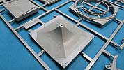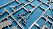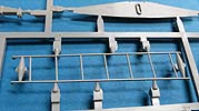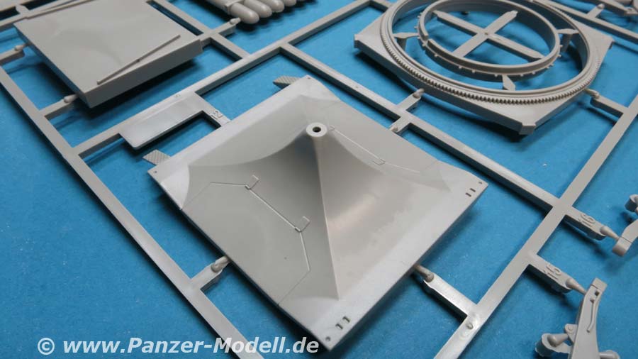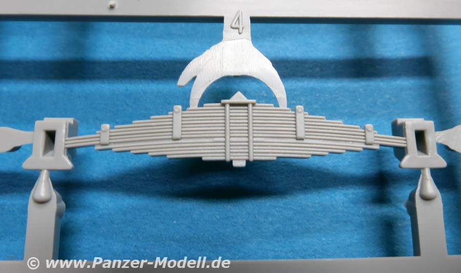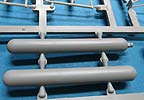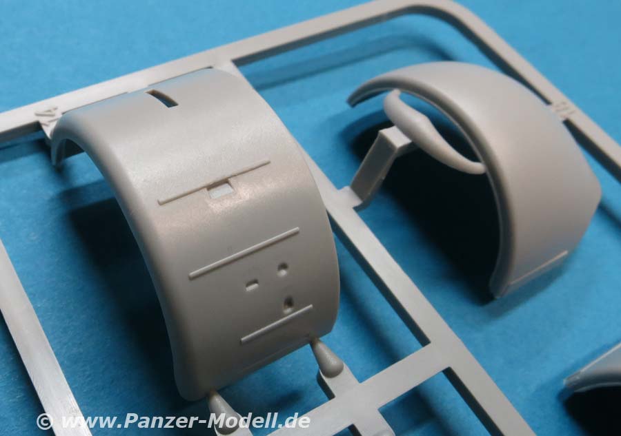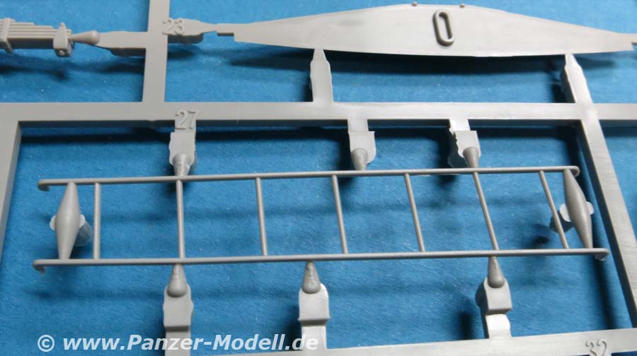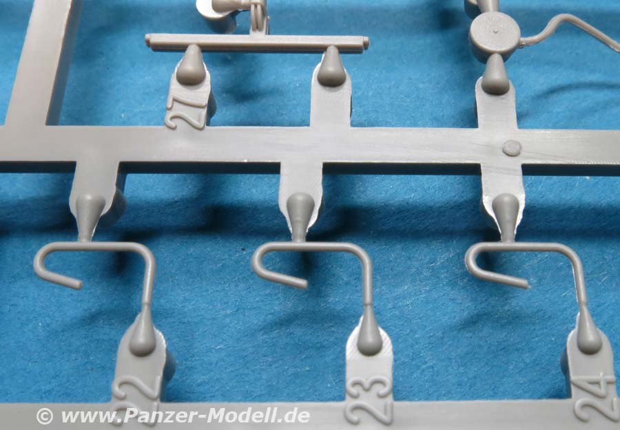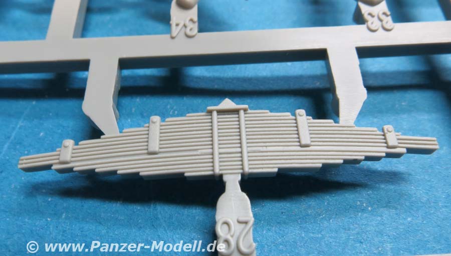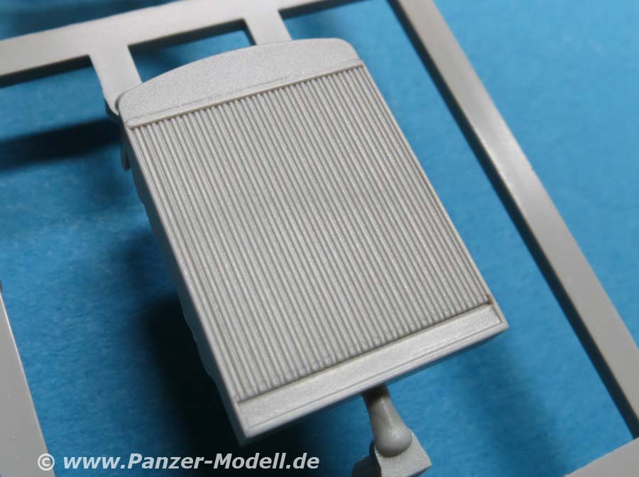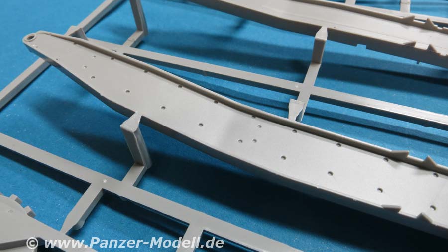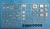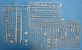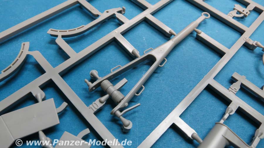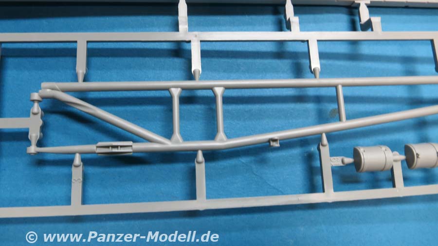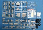 Der Meillerwagen setzt sich aus einem recht komplexen und kleinteilelastigen Untergestell mit vielen Profilen und Verstrebungen zusammen, bei denen man schon sehr sauber und akkurat arbeiten muss, damit am Ende nicht irgendwo Verzug auftritt. Auch sind alle Zubehör und Anbauteile, wie Drucklufttanks, Staukisten, usw. enthalten. Die Teile selber sind alle sauber und fehlerfrei gespritzt, wobei manche Teile so fein und filigran sind, dass man beim Heraustrennen darauf achten muss diese nicht zu zerbrechen.