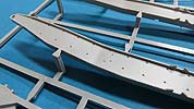 Der Raketenträgerrahmen gesteht im wesentlichen aus zwei großen Längs- und mehreren Querholmen, wie nactürlich die halbrunden Lager für die V2. Dieser Rahmen lässt sich entweder in der aufgestellten oder in der abgesenkten Position anbauen mit den jeweils korrekt langen Hydraulikstempeln.