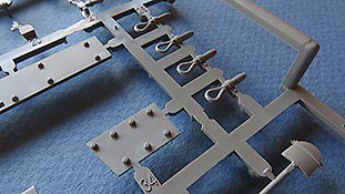 Auch in dieser Blitz Serie präsentiert Takom hier Spritzgussteile auf ganz hohem Niveau. Keine Fischhäute, kein Verzug, dafür saubere, klare, "crispe" Details, wenig Auswerferstellen, teils filigrane und kleine Bauteile und tolle Oberflächenstrukturen - sie stehen also den anderen Takom Bausätzen hier in nichts nach. An einigen Teilen zeigen sich Formtrennnähte, die aber grundsätzlich gut zu versäubern sind.