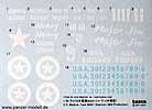 Es besteht die Möglichkeit unter vier Markierungs- / Ausführungsvarianten auszuwählen. So liegen Markierungen für zwei Fahrzeuge in olivgrün bei. Tunesien, Frühjahr 1943 oder Italien, April 1945. Weiterhin findet sich ein Fahrzeug in olivgrün mit großen sandfarbenen Tarnflecken, Sizilien, Juli 1943, oder aber ein Panzer in olivgrün mit kleinen sandfarbenen Tarnflecken, Tunesien, Frühjahr 1943. Leider sind in der Bemalungsanleitung jeweils nur drei-Seiten-Ansichten in s/w vorhanden. Die Farbangaben beziehen sich auf die Tamiya Acryl Farben und eine weitere, mir unbekannte Farbsorte.