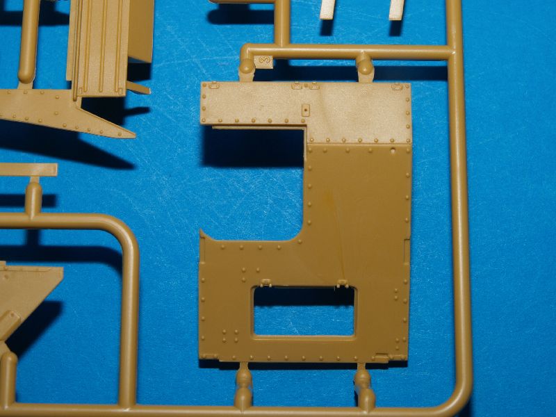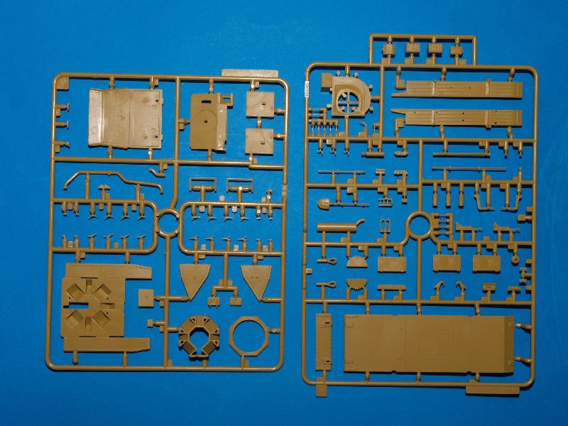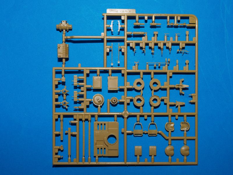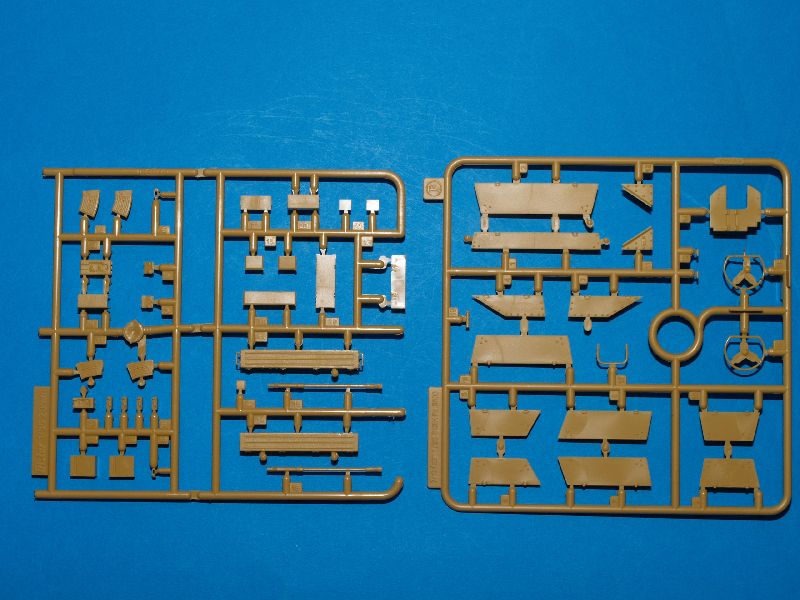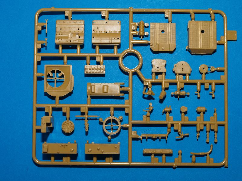 Der Bausatz enthält gut 500 Teile in Spritzguss, von denen allein 220 auf die Kettenglieder entfallen, einen Stahldraht für die Abschleppseileund einen Ätzteilsatz, sowie einen Decalbogen.