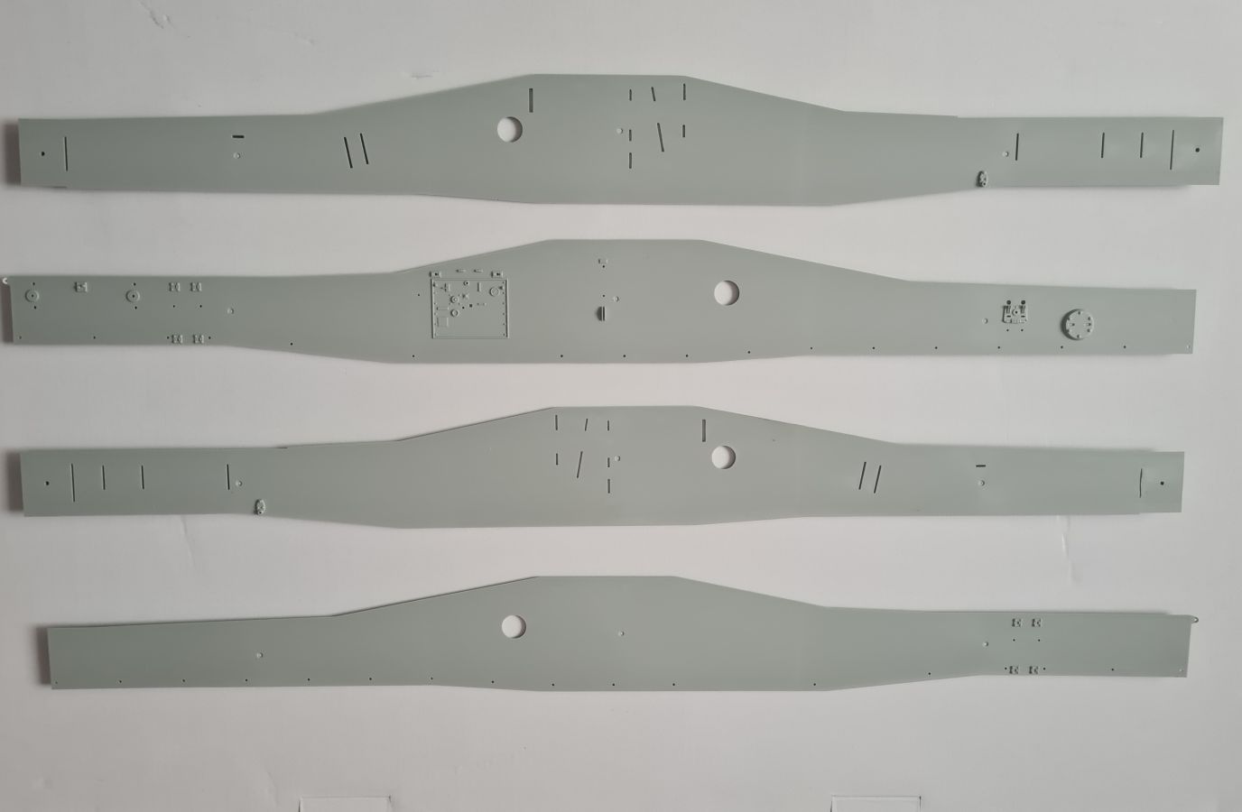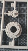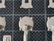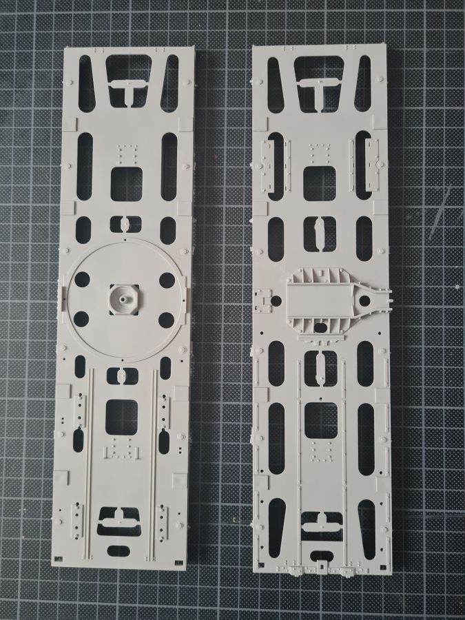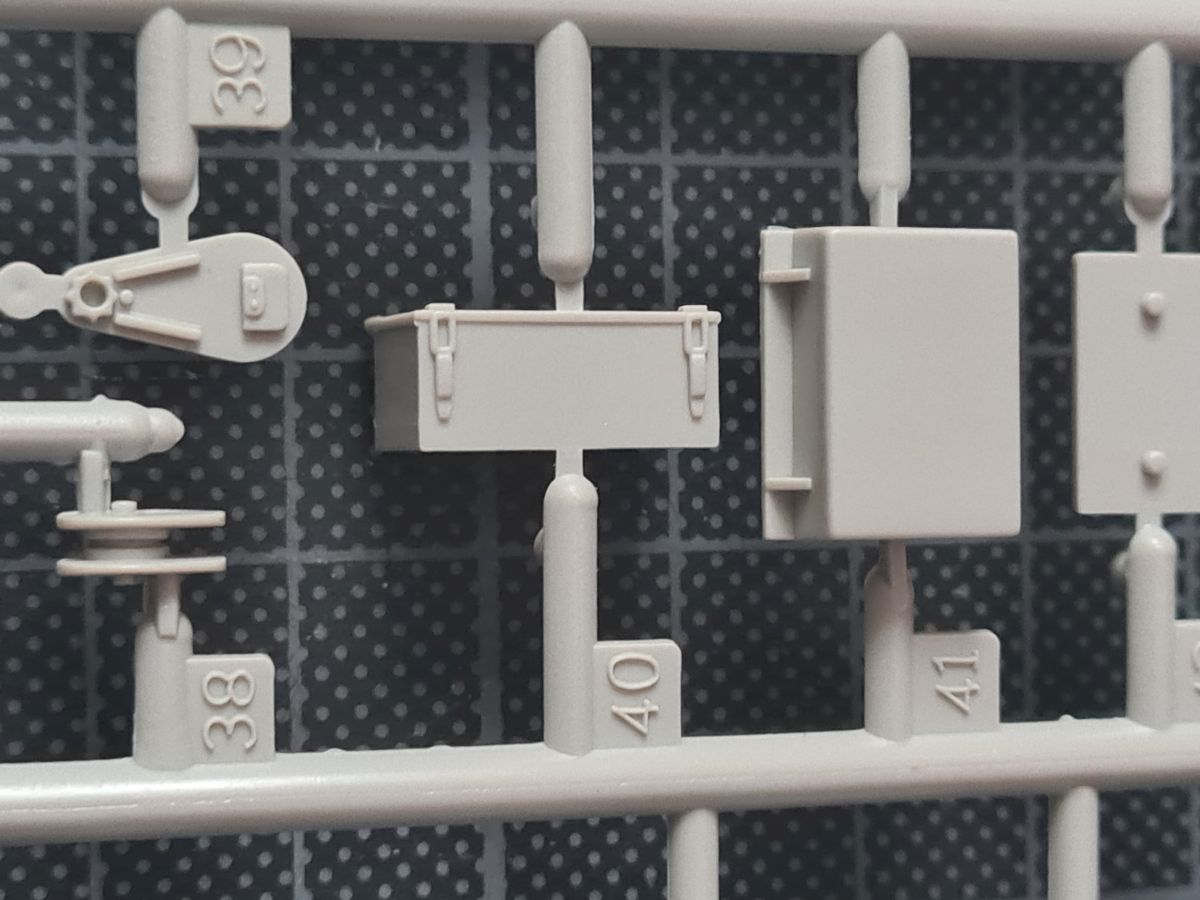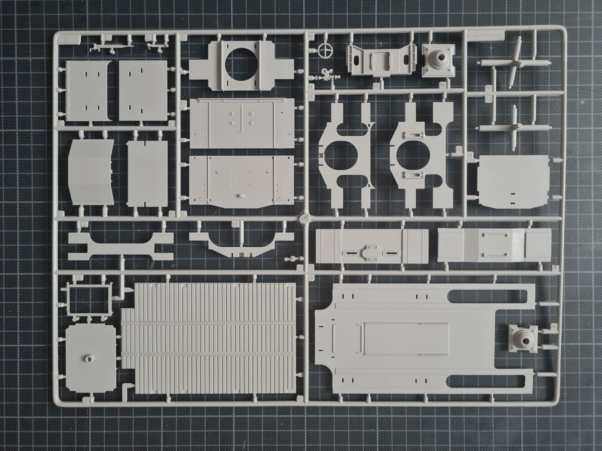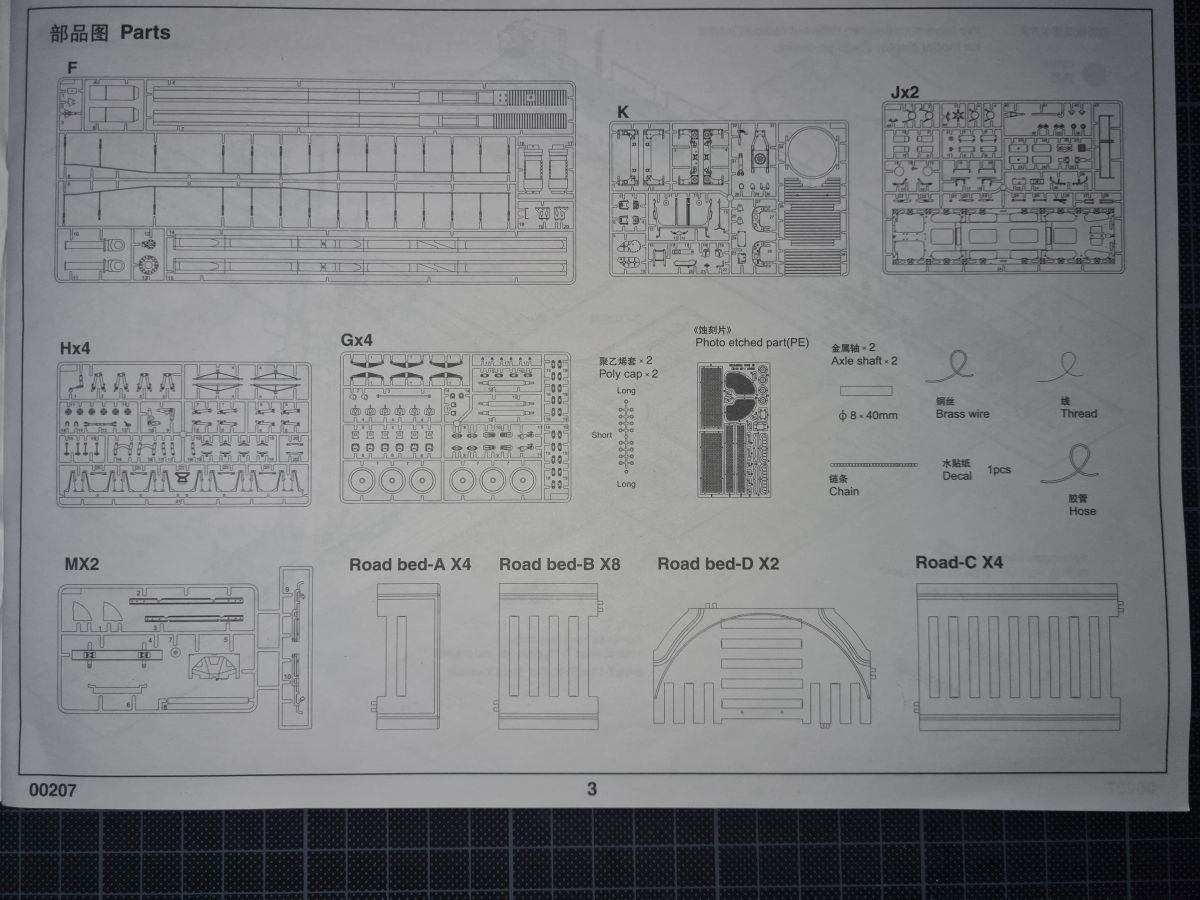 Beim Öffnen des doch recht großen Kartons, finden sich 20 Spritzgussrahmen für das Rohr, die Rohrwiege mit Rahmenlafette und die beiden Drehgestelle auf denen die Lafette aufgesetzt wird. Weiterhin finden wir 4 Spritzgussrahmen für die Darstellung der Schienen und die beiden Oberteile der Drehgestelle. Zu guter Letzt haben auch noch 3 mehr oder weniger große Kartons platz. In diesen befinden sich neben dem Gleisbett und der Drehscheibe, gut verpackt in eine extra Schutzhülle die Teile der Rahmenlafette und im Kleinsten der drei Kartons, 18 Polycaps, eine Ätzteilplatine, 2 Metallzylinder (zur Aufnahme des Rohres in der Rohrwiege), eine feingliedrige Metallkette, ein Stück Kupferdraht, ein Stück Faden und ein Gummischlauch. Abschließend zu diesem Potpourri aus den verschiedensten Materialien der Modellbauwelt finden wir noch einen Decalsatz, aber dazu später mehr. Macht in der Summe ca. 1200 Plastikteile und diverses Kleinmaterial. Der erste Eindruck der Teile und Spritzlinge ist, trotz des Alters, in sehr guter und bekannter Trumpeterqualität. Feine Details, detaillierte Holzmaserung und selbst auf den kleinsten Teilen sind erhaben gegossene Schriftzüge zu erkennen. Die Schienen- und Gleisbettsegmente sind mit allen anderen von Trumpeter gefertigten, schienengebunden Modellen, identisch und somit ist eine Erweiterung, zum Beispiel mit der WR 360 C12 Lokomotive (Nummer TRU00216) ohne Probleme möglich. Die Bauanleitung ist als kleines Heft ausgeführt und beschreibt den Bau detailliert auf 44 Seiten. Der Bemalungsguide ist in schwarz-weiß gehalten, jedoch ist auf der Kartonverpackung nochmal alles in Farbe abgebildet. Die Gesamtlänge des Modells wird von Trumpeter mit knapp 96cm angegeben, wobei bei Nutzung des Drehtellers und der mitgelieferten Schienen eine Länge von etwas mehr als 100cm erreicht wird. Und zwar im 90° Winkel, in 2 Richtungen, je 100cm! Die Höhe wird laut Verpackung mit 16cm und die Breite mit knapp 13cm benannt, wobei die Höhe mit gesenktem Rohr gemeint ist. Vorsichtig geschätzt wird bei Schussposition eine Höhe von ca. 40cm erreicht. Das Geschützrohr lässt sich beweglich bauen und auch die Drehgestelle bleiben beweglich. Für die Darstellung wird dem Modellbauer eine Variante auf geradem Gleisbett ober aber auf einer Drehscheibe angeboten. Letztere macht sicher viel her, kostet aber auch entsprechend Platz. Ein doch recht auffälliges Problem und wohl der größte Kritikpunkt ist der Decalsatz. Dieser strotzt nur so von Rechtschreibfehlern und kostet dem besten Modell viel an Glanz. Man kann sicher mit Verschmutzung und Alterung des Modells arbeiten und somit die Fehler vertuschen, aber jeder Heim- und Handwerker kennt dieses Gefühl, dass man einen Fehler oder eine nicht so gelungene Stelle immer wieder im Blick hat. Wer viel Wert auf Detaillierung legt, sollte sich zum Beispiel die Zurüstsätze der Firma Schatton ansehen. Außer einem gedrehten Alugeschützrohr (Schatton Art.Nr.: 3510, ca. 33€), bietet dieser Hersteller auch noch ein Set aus 2 Granaten und den passenden Treibladungskartuschen an (Schatton Art.Nr. 3511, ca. 12€). Auch eine Überlegung wert ist der Decalsatz von Peddinghaus (Peddinghaus Art.Nr.: 0905, ca. 12€), der auch nicht gänzlich fehlerfrei daherkommt aber doch etwas besser scheint. Trumpeter hat natürlich auch nicht vergessen, dass für den Einsatz des Geschützriesen eine Besatzung von Vorteil wäre und spendiert unter der Nummer TRU00406 eine 8-köpfige Bedienmannschaft, je nach Bezugsquelle für ca. 15€. Fazit: Ein recht imposantes Modell, das nicht nur eine Menge Bastelspaß verspricht, sondern auch den ein oder anderen geneigten Modellbauer am Ende vor ein Platzproblem stellen wird. Die Detaillierung, sowie der Teileumfang rechtfertigen den Kaufpreis für um die 100€ auf jeden Fall. Ein echter Hingucker in jeder Modellbausammlung ist es allemal.