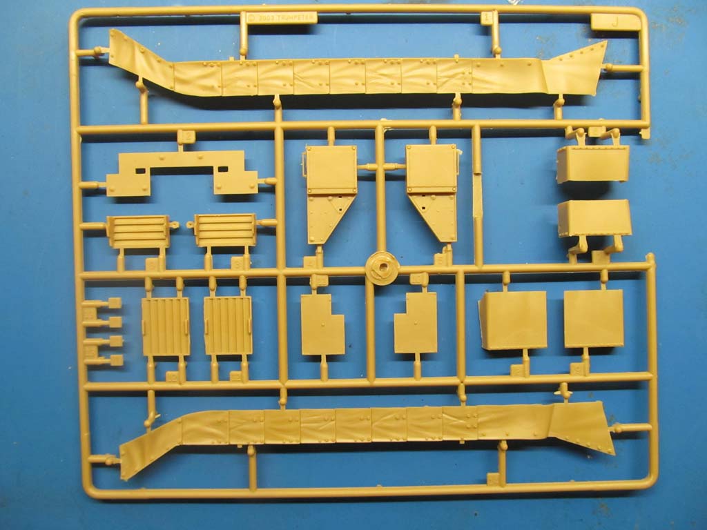 Aus dem Hause Trumpeter kommt unter der Nummer 00323, der Bausatz des Challanger 2 MBT aus der Operation TELIC im Irak 2003. Der Karton kommt wie gewohnt, vollgepackt daher und verspricht ne Menge Bastelspass. Die Wannenteile kommen auch mit einer Fülle an details daher die mit den Teilen aus den nächsten 3 Spritzlingen auch den Turm zu noch mehr Details verhelfen. Es gibt die Möglichkeit am Heck die typischen Zusatztanks anzubauen. Auch sind einiges an Kleinteilen an den Lüftergittern zu verbauen wo man schon sehr sorgfältig arbeiten sollte damit es nachher unterm Lack noch genau so fein aussieht. Der aus 2 Teilen bestehende Turm bietet die Möglichkeit die Kanone beweglich zu bauen. Auf den folgenden 2 Seiten wird dann in schwarz/weiss erklärt welche Decals wohin gehören um einer der 2 Versionen aus dem Irak 2003 darstellen zu können. Es werden hier auch nur die Gunze Farben empfohlen, warum Tamiya oder andere Hersteller nicht, kann ich nicht sagen und wundert mich auch etwas. Da ich einige kleine Updates verbauen will komme ich um ein paar Zukäufe nicht drum rum!! Fazit: Wer für kleines Geld einen Imposanten Kampfpanzer der Britischen Streitkräfte bauen will ist mit dem Challenger ab 15,-€ wirklich gut bedient. Die Details sind stimmig und fein, die Fülle an Teilen ist sehr übersichtlich und die Bauanleitung lässt keine Fragen offen. Auch für Anfänger durchaus geeignet!!(Review von Oliver Berger) |