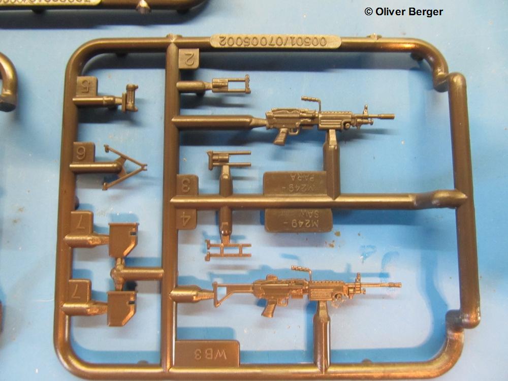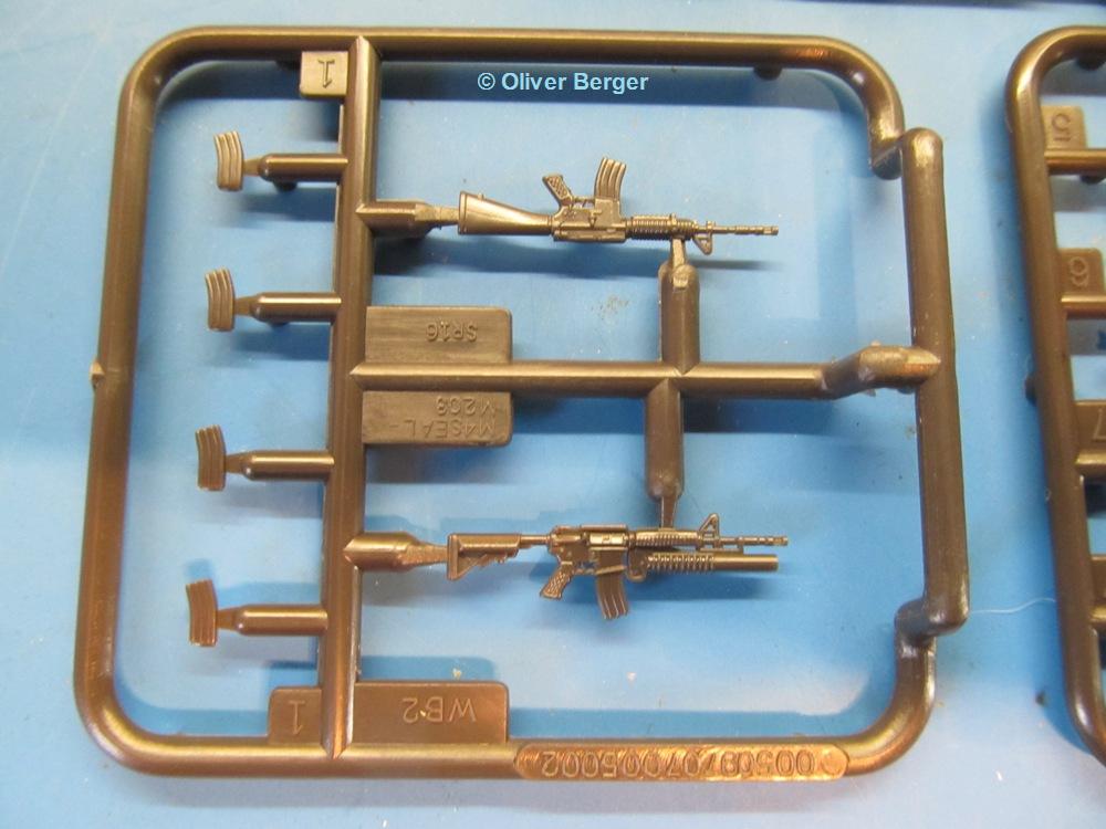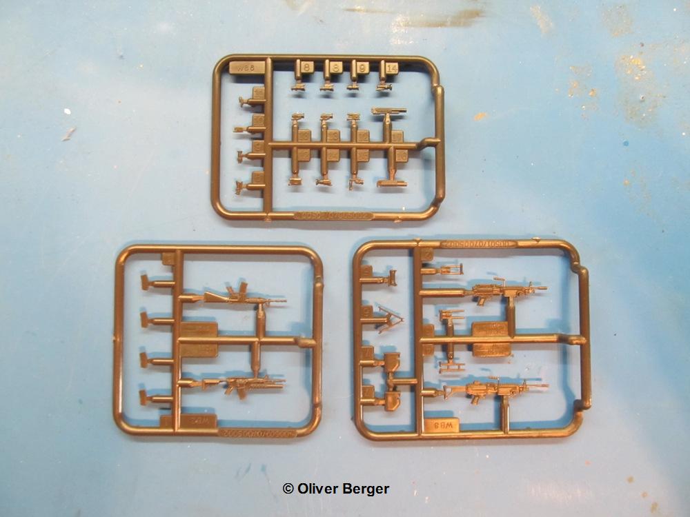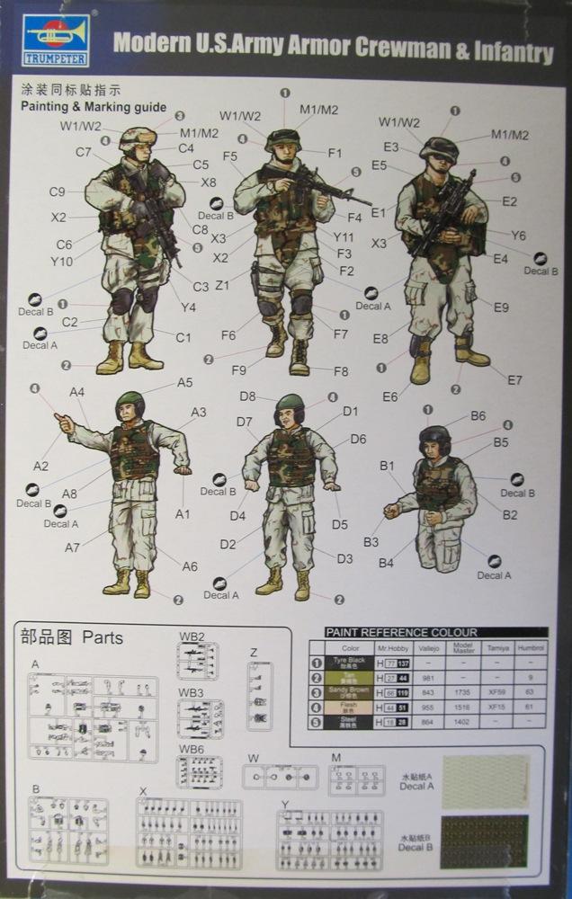 Von Trumpeter stelle ich Euch heute den Bausatz Modern U.S. Army Armor Crewman & Infantry vor. Unter der Nummer 00424 findet man die 6 Figuren im Maßstab 1:35. In normaler Größe kommt die Schachtel daher, auf deren Rückseite sich die Bau- und Bemalungshinweise befinden. Innen findet man dann 5 graue Spritzlinge mit den Figuren, Ausrüstung und Helmen, 3 kleine schwarze mit den Gewehren und deren Anbauteilen, 1 Klaren mit den Schutzbrillen und 2 Decalsheets mit 2 verschiedenen Tarnmustern. Die Spritzlinge sind allesamt sauber gegossen und weisen sehr feine Strukturen und Details auf. Die Auswahl zwischen Hut oder Helm fällt leider aus, aber wer schon den einen oder anderen Figurensatz verarbeitet hat, findet bestimmt was in der Restekiste oder im Zubehörmarkt. Die Köpfe sind super detailiert und jeder einzelne hat seine eigene und gut erkennbare Gesichtsmimik. Die Uniformen sind ebenfalls super! Wenn die soweit zusammen gebaut sind, ist es schon fast zu schade, noch mehr Gerödel dran zu kleben, aber wenn, dann wertet das die Figuren allesamt noch viel weiter auf. Die Gewehre sind auch filigran, filigraner geht in Spritzguss glaube ich nicht. Die Schutzbrillen, die in klarem Plastik gespritzt sind, sehen auch echt gut aus. Warum die klar sind, weiss ich nicht, weil das nach der Farbgebung eh weg ist! Die Decalsheets mit den Tarnmustern sind auch nahezu perfekt. Ich habe bereits den ein oder anderen Satz von Trumpeter verbaut und die Decals waren super einfach zu verarbeiten. Klar ist es immer mühseelig, eine Figur zu decalen, aber wenn man die nötige Geduld mitbringt, kann man sich damit die 6 Figuren in 2 Tarnmustern gestalten, was dann im Endergebnis echt überzeugen dürfte. Wer lieber seine Leute bemalt, findet auf der Rückseite des Kartons den Bemalungsguide mit entsprechender Farbtabelle. Die 5 Farben sind in voller Gänze nur von Mr. Hobby aufgeführt. Bei Vallejo gibt es Tyre Black laut Tabelle nicht, ebenso bei Tamiya, Modelmaster und Humbrol. Bei den letzten 4 gibt es angeblich mehrere Farben angeblich nicht. Wer hier etwas gewand ist, kennt sich aus und jeder hat ja seine Vorlieben, welche Farben er benutzt. Fazit: Ein toller Bausatz, der den Modellbauer 6 Figuren bauen lässt, die in jeden Stryker oder Bradley gehören. Auch für Anfänger durchaus geeignet, aber empfehlen würde ich das Ganze dann doch schon eher, wegen der Fülle an Kleinteilen, einem geübteren Modellbauer. Mit rund 10,-€, je nach Händler kann man dieses tolle Kit sein Eigen nennen. Meiner Meinung nach, ohne Zukauf und mit etwas Geschick, ein "Muss" für das perfekte Diorama. (Review von Oliver Berger) |