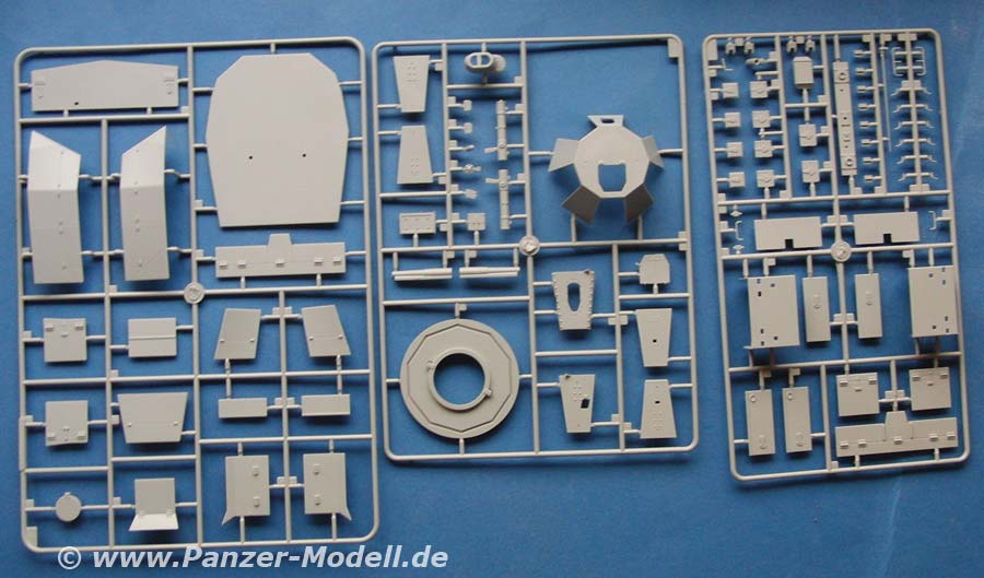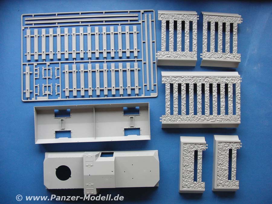 Im Karton finden sich 336 Teile an 9 Spritzlingen, Unterwanne, Oberwanne, Schotterbetten, PE Teile und ein Decalbogen.