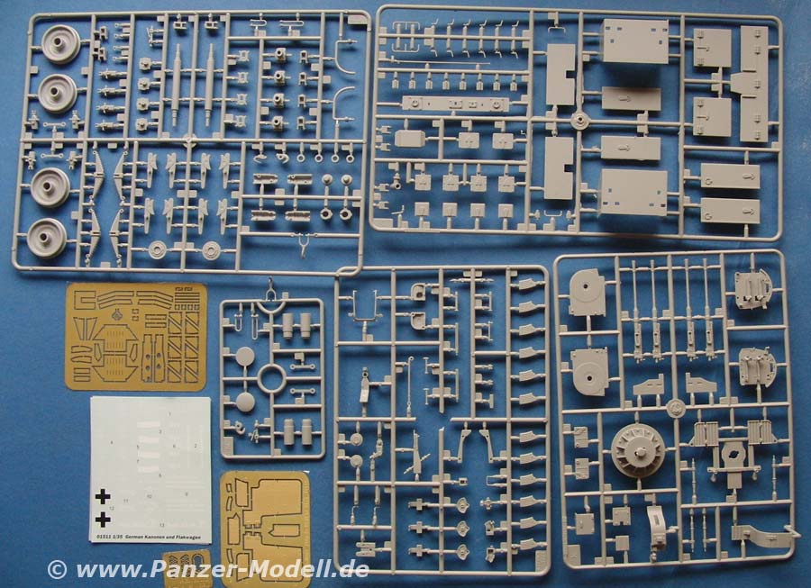 Die Bauanleitung enthält lediglich 14 Bauschritte, die aber teilweise sehr viele Unterschritte in einem Bauschritt aufweisen. Gerade der Zusammenbau der Flak mit den PE Teilen sieht nach einer Herausforderung aus.