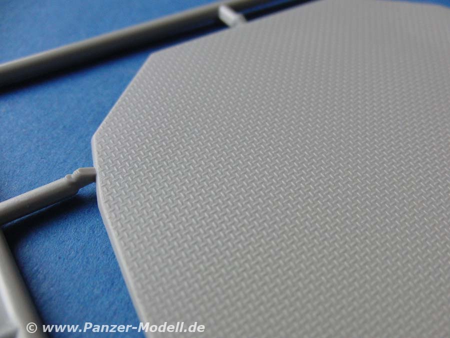 Die Plattform für die Flak wird mit Riffelblechboden ausgestattet, sowie einer gepanzerten "Umzäunung". die Flak an sich ist ganz gut nur die Rohre haben naturgemäß in Plastik so ihre Defizite. Dafür weiss Trumpeter mit den Schilden udn weiteren Details aus PE Blech zu erfreuen