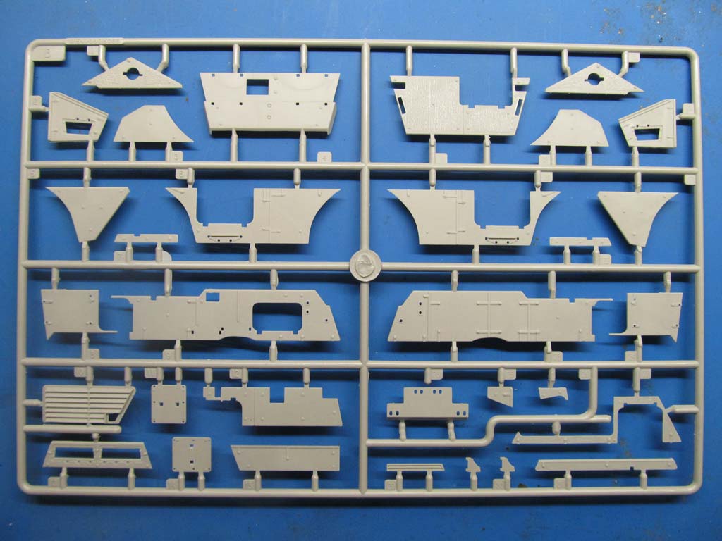 Heute will ich mich mal für die Modellbaugemeinde mit dem Bausatz 01541, des M1117 Guardian (ASV) von Trumpeter befassen. Die Schachtel kommt in mittlerer Größe und darinliegend mit 6 Spritzlingen aus grauem Plastik, 1 aus klarem Plastik für die Fenster, Winkelspiegel und Beleuchtung, 4 Vinylreifen (mit Aufdruck), 2 kleinen Platinen PE-Teilen, 1 kleine Kette und dem Decalsheet für 2 Versionen (eine KFOR und eine aus dem Irak) daher. Natürlich auch die Ober- und Unterwanne!! Die Teile sind allesamt sehr sauber gespritzt, so das ewig lange dauerndes versäubern den Modellbauer nicht lange aufhält. Zum Teil sind sehr filigrane Teile dabei, zum Beispiel die Schutzbügel für die Lampen und Spiegel, aber auch das gesamte Fahrwerk sieht sehr filigran aus. Wenn ich das richtig gesehen habe dürfte es keine große Sache sein einen Lenkeinschlag darzustellen.2 Rahmen beinhalten die Teile für das Fahrwerk und die Felgen. Letztere machen auch einen sehr feinen Eindruck. Ein Spritzling birgt die erforderlichen Teile für die Außenpanzerung. Die Oberflächen sind mit einen feinen Antirutschbelag versehen den ich auf den ersten Blick sehr unrealistisch fand aber dann auf Referenzbildern deren Richtigkeit gesehen habe. Die Luken können Wahlweise geöffnet oder geschlossen angebaut werden. Offen gebaut sind auch die Details auf den Innenseiten sichtbar die auch sehr gut gelungen sind. Der Rest ist dann für den Turm und sonstiger kleinen Anbauteile. Die PE-Teile sind in alt ehrwürdiger Trumpeter Manier. Die Decals sind sehr fein und für ein so „kleines“ Fahrzeug sehr umfangreich. Hier gibt es die Möglichkeit ein Fahrzeug aus dem Kosovo zu bauen. Wie auf dem Farbig dargestellten Bemalungsplan, in 3Farb Nato Anstrich oder eine Version aus dem Irak in Wüstenanstrich. Dann sind noch allgemeine Decals auf dem Bogen. Luftdruck und all so ein Zeugs. Nicht überladen führt die Bauanleitung in 14 Schritten zum Erfolg. Wie immer im DIN A4 Format, gut durchdacht und überschaulich. Bei den „wenigen“ Teilen wäre man mit weniger Bauschritten ausgekommen aber so erleichtert es dem Modellbauer die Teile übersichtlich zu verbauen. Die beiden Wannenteile haben beim trocken auf einander legen schon so gut gepasst das ich am liebsten schon Kleber drüber gekippt hätte!! Aber es geht ja nicht ohne nörgeln!! Ich hätte mich über eine Inneneinrichtung gefreut aber man kann ja nicht alles haben. Fazit: für rund 20,-€ bekommt man einen Bausatz der auch für Anfänger gut, nicht leicht, aber zu schaffen ist. Überzeugend sind die Filigranität der Teile und das sehr gut gefüllte Decalsheet. Ein schöner Bausatz dessen Endergebnis locker mit Dingo, Fennek und dem ein oder anderen Stryker mithalten dürfte und meiner Meinung nach empfehlenswert!! (Review von Oliver Berger) |
