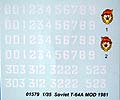 Die Bemalungsanleitung ist auf einem farbig gedruckten DIN A4 Bogen gedruckt und schlägt eine Mehrfarbtarnung in sandgelb und hellgrün mit schwarzen Trennstreifen. Der Decalbogen hat Embleme einer Gardeeinheit, sowie vier Sets an Nummern von 0-9 und je zwei vorgegebene Turmnummern "302", "312", "3222" und "523".