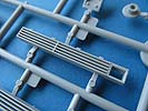 Die Oberwanne komm in einem Stück, muss aber für diese Version von der Innenseite her an einigen Stellen durchbohrt werden. Das Motordeck wird einzeln eingesetzt und mit erstaunlich viel kleinen Teilen verfeinert. Die große Lüfterklappe wird mit PE Gitter verfeinert und könnte auch offen dargestellt werden. Da aber kein Motorraum enthalten ist, macht das allerdings keinen Sinn.