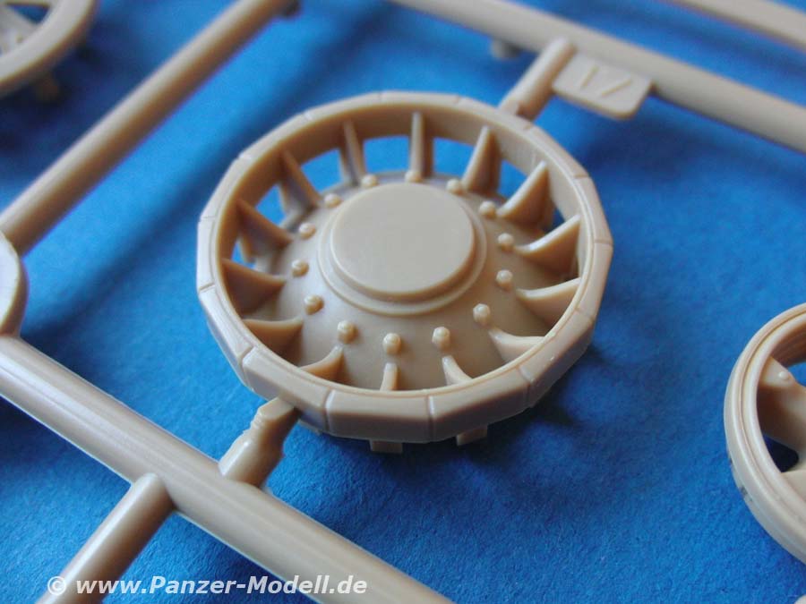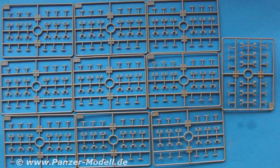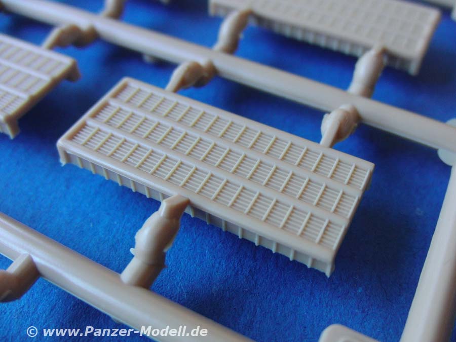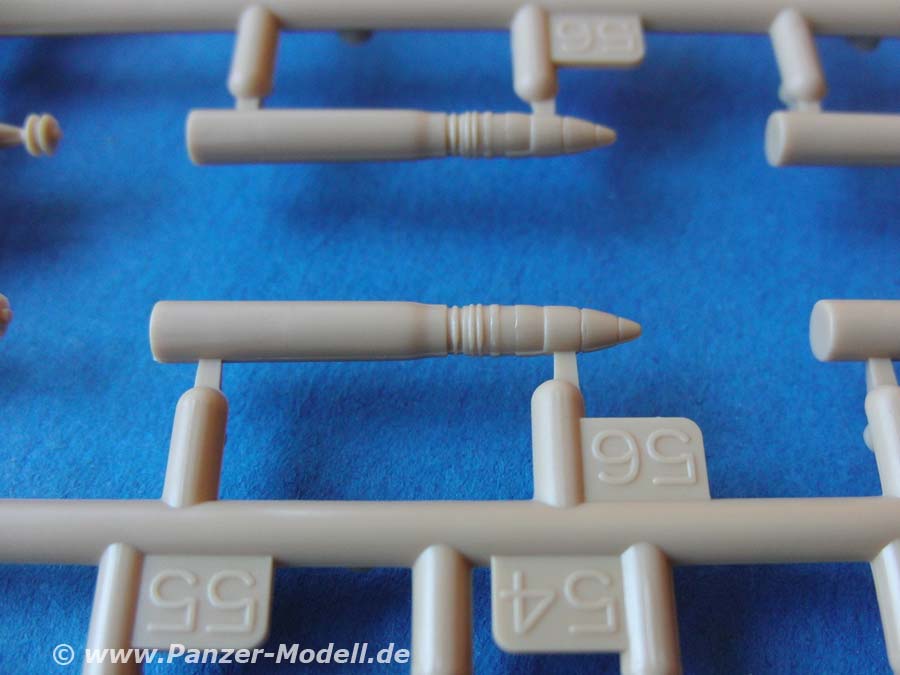 Die Detaillierung der Spritzgussteile ist wie mittlerweile gewohnt sehr gut - mit feinen und scharfen Details. Gussfehler oder Fischhäute findet man hier nirgends. Selbst Auswerfermarken sind kaum zu finden und wenn, dann nur an Unter- und Innenseiten, wo man sie nicht sieht.