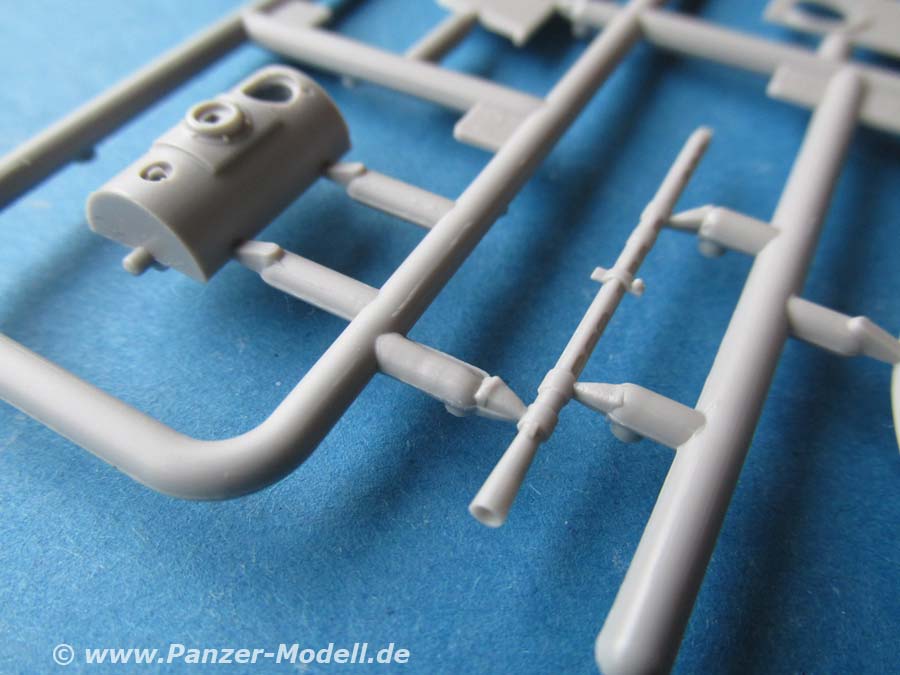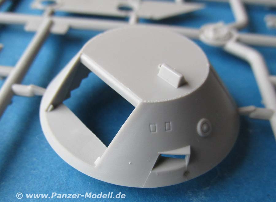 Der Turm ist soweit in einem Stück komplett gespritzt und wird mit etwas Innenleben und aussen mit den Nebeltöpfen und natürlich dem MG Rohr versehen. Dieses ist aus Plastik und dafür recht ansehnlich.