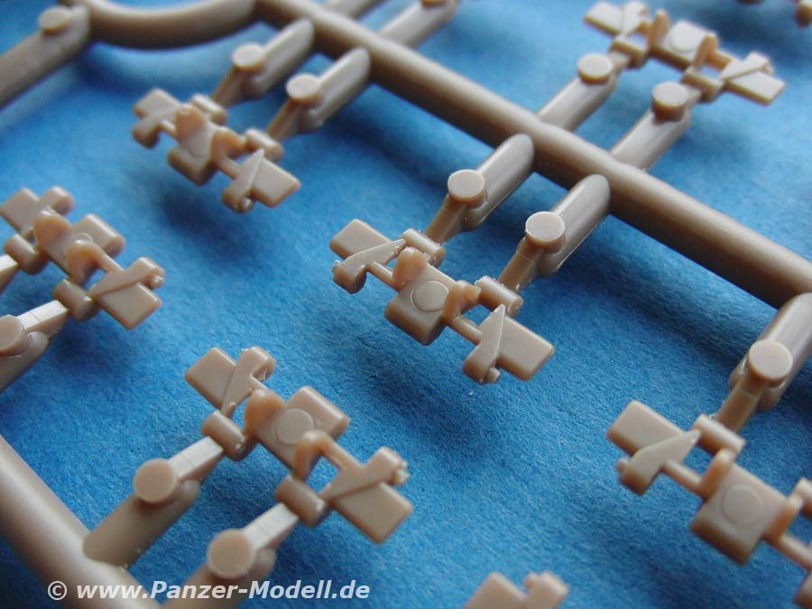 Die Qualität der Teile ist wieder ausgesprochen gut - Gussfeler oder Plastikauslauf ist nicht zu sehen. Auswerferstellen wenn überhaupt an Stellen, die später nicht zu sehen sind. Einzige Ausnahme: Die Kettenglieder weisen mittig zwischen den Führungszähnen eine Auswerferstelle auf.