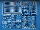 Im Karton finden sich 10 Spritzlinge, zwei Türme, Aufbau und Bodenblech, sowie 5 Schotterbettteile für das Gleis.