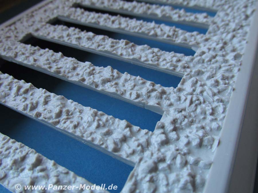 Für den Panzerwagen liegt eine entsprechend langes Stück Gleismaterial auf Schotterbett beu, welches optisch ganz ansprechend gemacht ist.