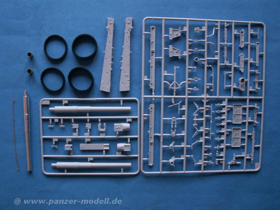Insgesamt hat man hier einen guten Bausatz, der leider an einigen Stellen krankt mit Auswerferstellen, schwachen Details und eben die Hauptachsen 5mm zu breit sind. Dazu gibt es leider weder Decals noch sonstige Gimmicks wie Munition oder Zubehör. Letzteres ist durchaus verzeihlich, wenn es sich hierbei wirklich nur um die Transportvariante geht. Ausserdem glänzt der Bausatz mit einem unschlagbar guten Preis von etwa 20 Euro, was nur ein wenig mehr als die Hälfte des Preises des Dragon Bausatzes ist! Man bekommt also schon was fürs Geld.