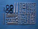 Im Karton finden sich 6 Spritzlinge, zwei einzelne Holme, 4 Gummibandagen für die Räder, ein Metallrohr, zwei Metallhülsen und ein feines Metallkettchen.
