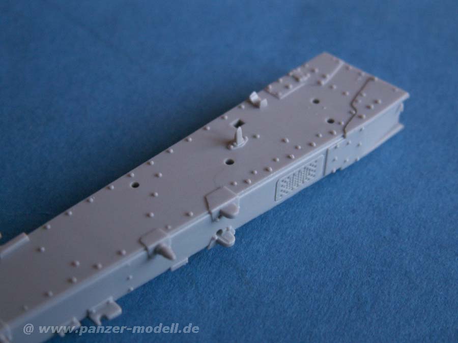 Allerdings zeigt sich bei Vergleichen mit Maßstabszeichnungen, dass die Hauptachsen etwa 0,5cm zu breit sind, was man leider nicht so leicht korrigieren kann. Auch das Layout der Nieten weicht von Vorbildfotos ab.