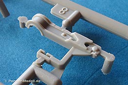 Der obligatorische Entfernungsmesser ist im Bausatz enthalten und die eigenwilligen Spiralfedern, die ihn vor den Erschütterungen bei Schussabgabe geschützt haben, werden hier aus dünnen PE Streifen dargestellt, die man selber zu einer Spirale biegen soll - vom Prinzip ist PE hier eine gute Wahl, aber schwierig entsprechend zu rollen.
