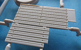 Die dreieckige Basislafette der Flak setzt sich aus zwei großen Teilen zusammen. Die beiden Stützausleger lassen sich beweglich bauen für die Darstellung in Transport- oder Feuerstellung.