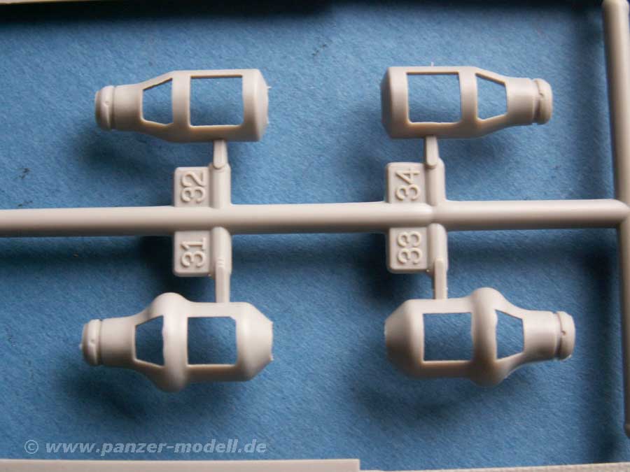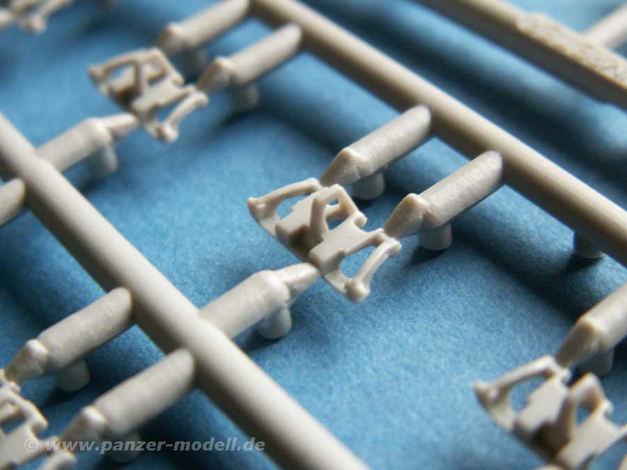 Die Kanone ist ebenfalls sehr gut und stark detailiert, wobei das Rohr leider aus zwei Plastikhalbteilen besteht. Dafür hat man die Wahl zwischen zwei verschiedenen Mündungsbremsen, die man bei den beiden Prototypen beobachtet hat.