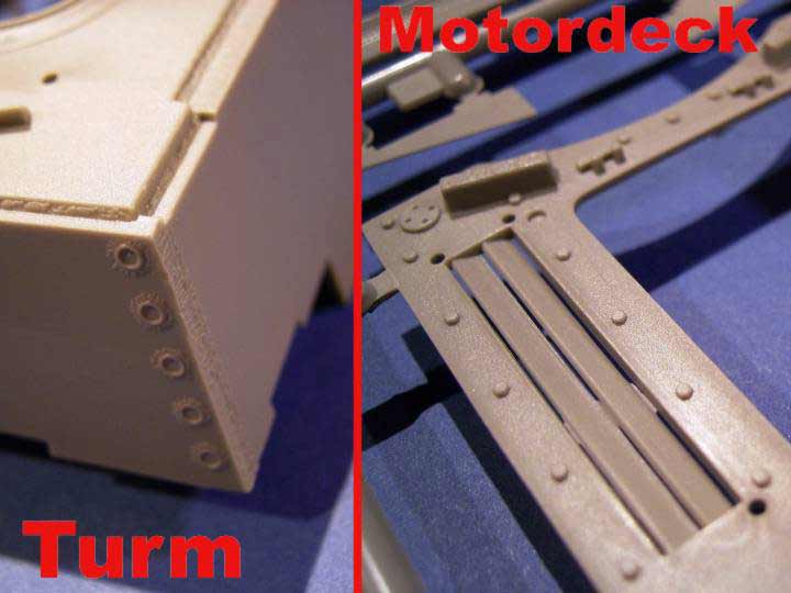 Durch alternative Bauteile (Panzerungsteile und Alternative Blende mit Flammstrahlrohr (?) ) kann man sein Fahrzeug individuell gestalten. Jedoch wird in der Anleitung darauf nur als Option hingewiesen, wodurch eine richtige Verwendung zusätzlicher Quellenforschung bedarf. Hier können die neust erschienenen Hefte aus dem Tankograd-Verlag gute Dienste leisten.