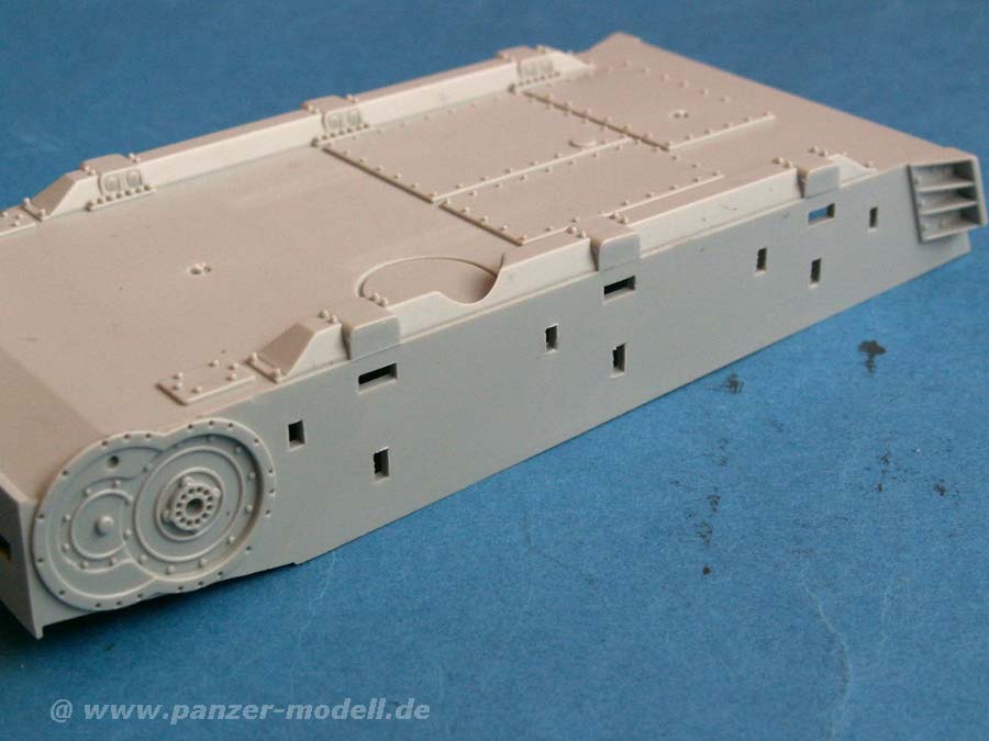Die Teile AN SICH sind von angenehmer Detailqualität und auch gut gegossen. Aber die Hiobsbotschaft entpuppt sich, wenn man das Problem des alten On Track Bausatzes kennt: die Wanne ist 2cm (ja, Zentimeter, nicht Millimeter) zu kurz. Auch der Turm ist deutlich zu kurz geraten, während Höhe und Breite bei Wanne und Turm stimmen - das verzerrt die gesamte proportion gewaltig!