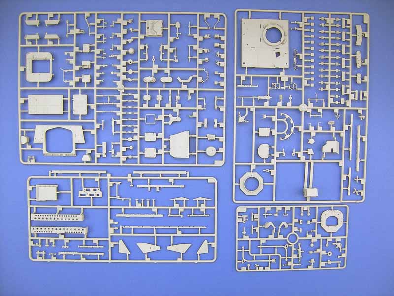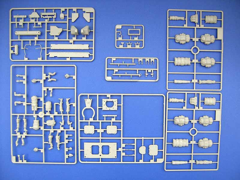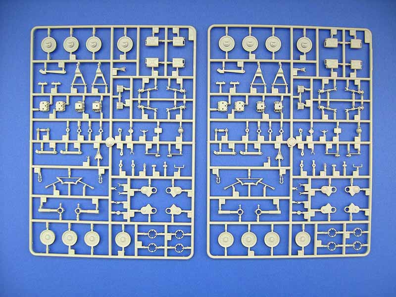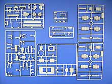 Die beiden beiliegenden Spritzrahmen mit verschiedenen Ausrüstungsgegenständen wie Rucksäcke und Planen werden in der Bauanleitung nicht gesondert erwähnt. Lediglich in der Bauteilübersicht findet sich der Hinweis dass diese Teile nach eigenem Ermessen am Fahrzeug angebracht werden können.