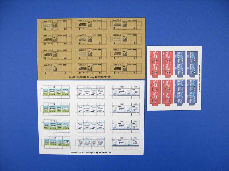 Dann ist da noch der bedruckte Papierbogen mit Getränkekartons und den MRE Kartons.