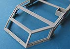 Das Wannendach setzt sich aus drei Hauptteilen zusammen. Alle Luken (ausser der Motorluke) lassen sich offen darstellen. Das Lüftergitter ist aus schön geätztem PE Gitter gemacht und die Details sehr schön wiedergegeben. Die Motordeck Details sind ebenfalls vom deutschen Fennek dargestellt, wie der Antennensockel und danebenliegende runde Struktur. Der ausfahrbare Sensorkopf macht einen guten Eindruck und lässt sich in drei Zuständen einbauen - einmal eingefahren mit geschlossener Luke, einmal etwas ausgefahren und einmal weit ausgefahren. Allerdings muss man sich für eine der Versionen entscheiden.