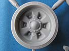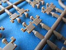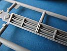 Die Schwingarme werden einzeln eingesteckt, die aber arretiert in der Unterwanne verklebt werden und daher weder beweglich noch frei positionierbar sind. Die Räder werden mit Polycaps gebaut und auf die Schwingarme gesteckt - diese bleiben damit drehbar, was für die Bemalung der Gummierung sehr angenehm ist.