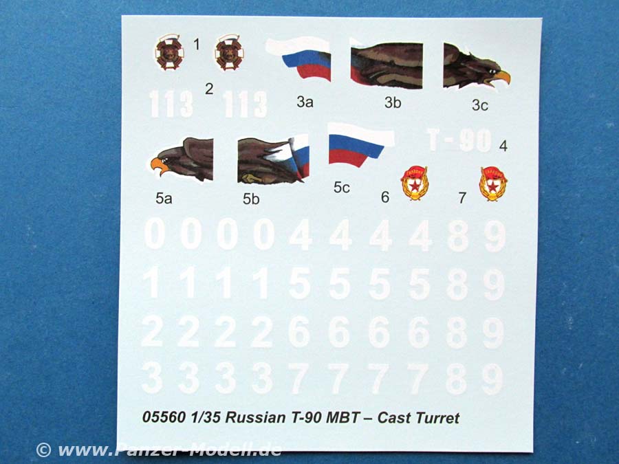 Die eine Version zeigt einen T90 in 4-Farb Tarn ohne markierungen, sowie einen T90 auch in 4-Farb Tarn mit großen und auffälligen Markierung - wie es scheint von einer Präsentation.