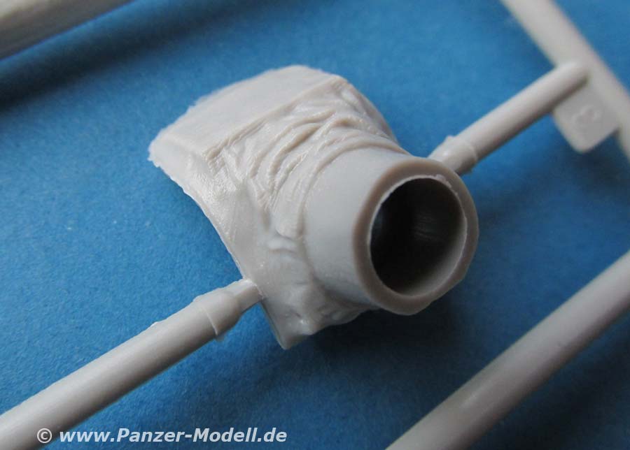 Die kanonenblende ist auch aus dem beiliegenden weichen Plastik gemacht und weist daher am rand minimalst einen ausgefransten Rand auf - das dürfte aber kaum auffallen. Der Guss udn Details der Planenstruktur ist jedenfalls schön gemacht.