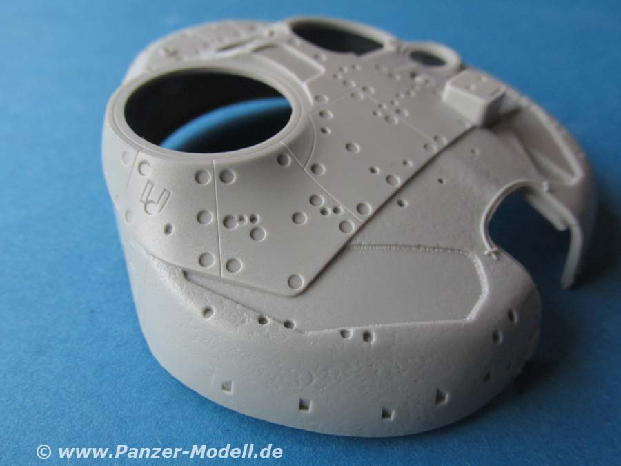 Der Turm stellt wie gesagt die Gussform dar und ist im groben aus Ober und Unterteil schnell zusammengesetzt. Die aufesetzten Panzerplatten im oberen Bereich sind gut dargestellt.