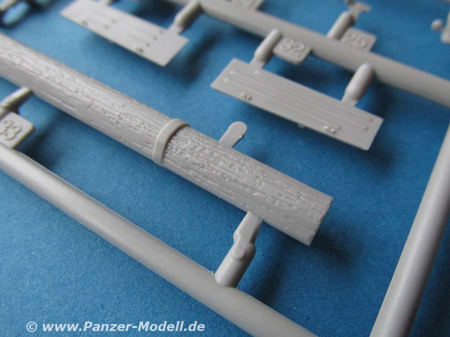 Das Kanonenrohr liegt sowohl als mehrteiliges Plastikrohr oder einteiliges Metallrohr bei und das sieht richtig gut aus und ist bei dem Preis fürs Modell ein satter Pluspunkt in puncto Ausstattung.