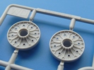 Die Teile der Spritzlinge D und F für die Haubitze stammen aus dem B4 Model 1931 203mm Howitzer Bausatz. Das Rohr ist zwar in 2 Hälften geteilt, aber die eine Hälfte hat zumindest die Mündung als ein Rundstück, in das die aus einem Ätzteil zu biegenden Züge und Felder eingesetzt werden. Verschlussblock, Verschluss, Seiten- und Höhenrichtanlage sind als separate Teile mit schönen Details wie Schrauben und Nieten ausgeführt.